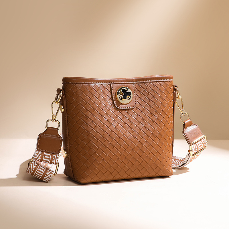 彤彤兔 包包女包编织锁扣水桶包时尚大容量单肩斜挎包