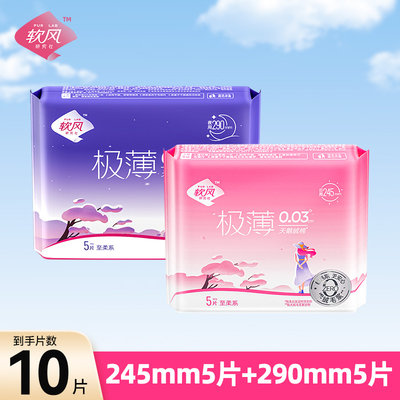 软风研究社 至柔天鹅绒卫生巾 日用1包+夜用1包 日用245mm5片*1包+夜用290mm5片*1包
