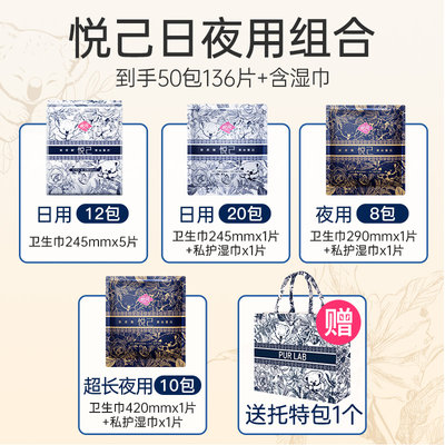 软风研究社 悦己系列卫生巾 日夜用组合 50包98片+赠托特包 卫生巾50包共98片+湿巾38片