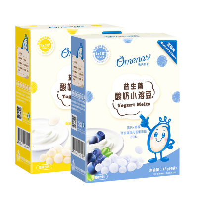 欧美那滋(Omenas)高钙益生菌酸奶小溶豆组合 蓝莓味+原味 18g*4盒