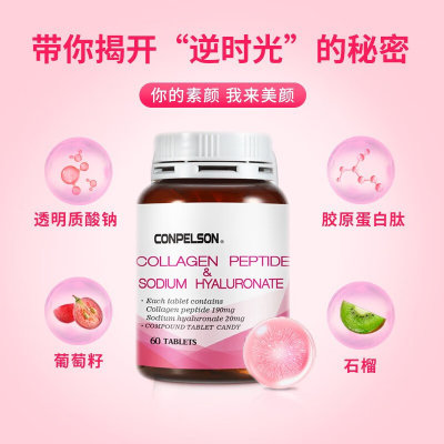 美国 康普力斯 (CONPELSON) 原装进口胶原蛋白肤透明质酸钠复合片 60片/瓶