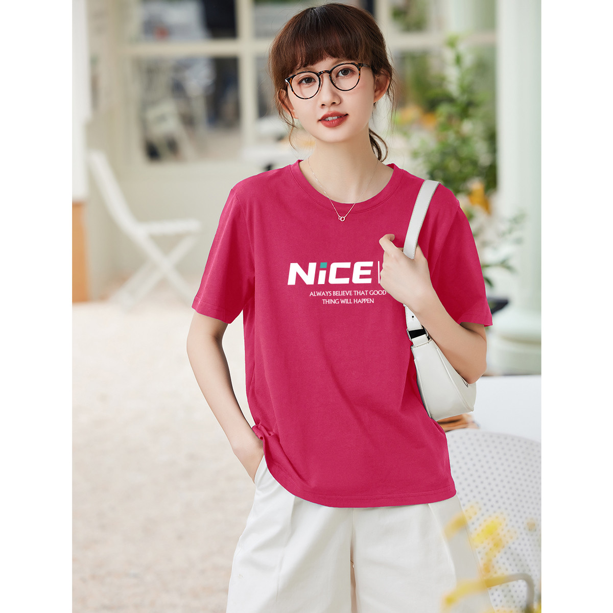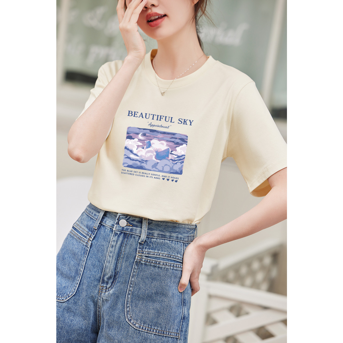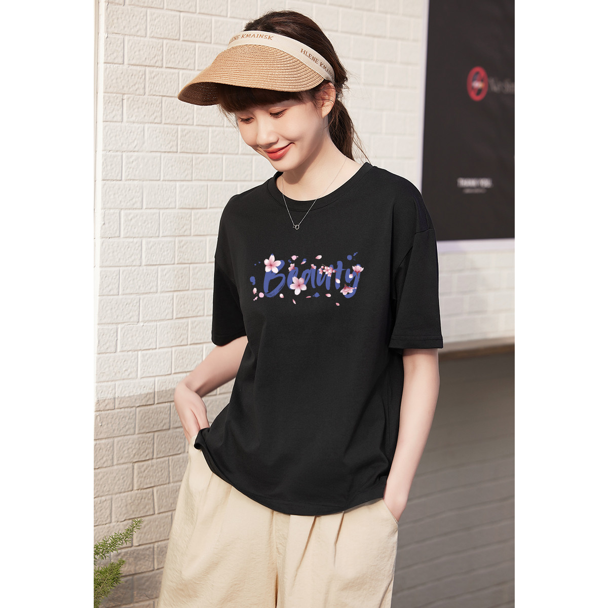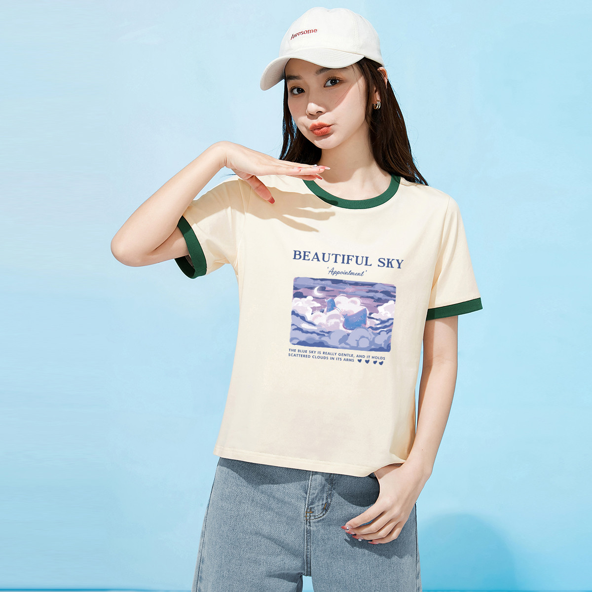 米子旗春夏季款圆领女T恤印花简约减龄短袖上衣女 106138