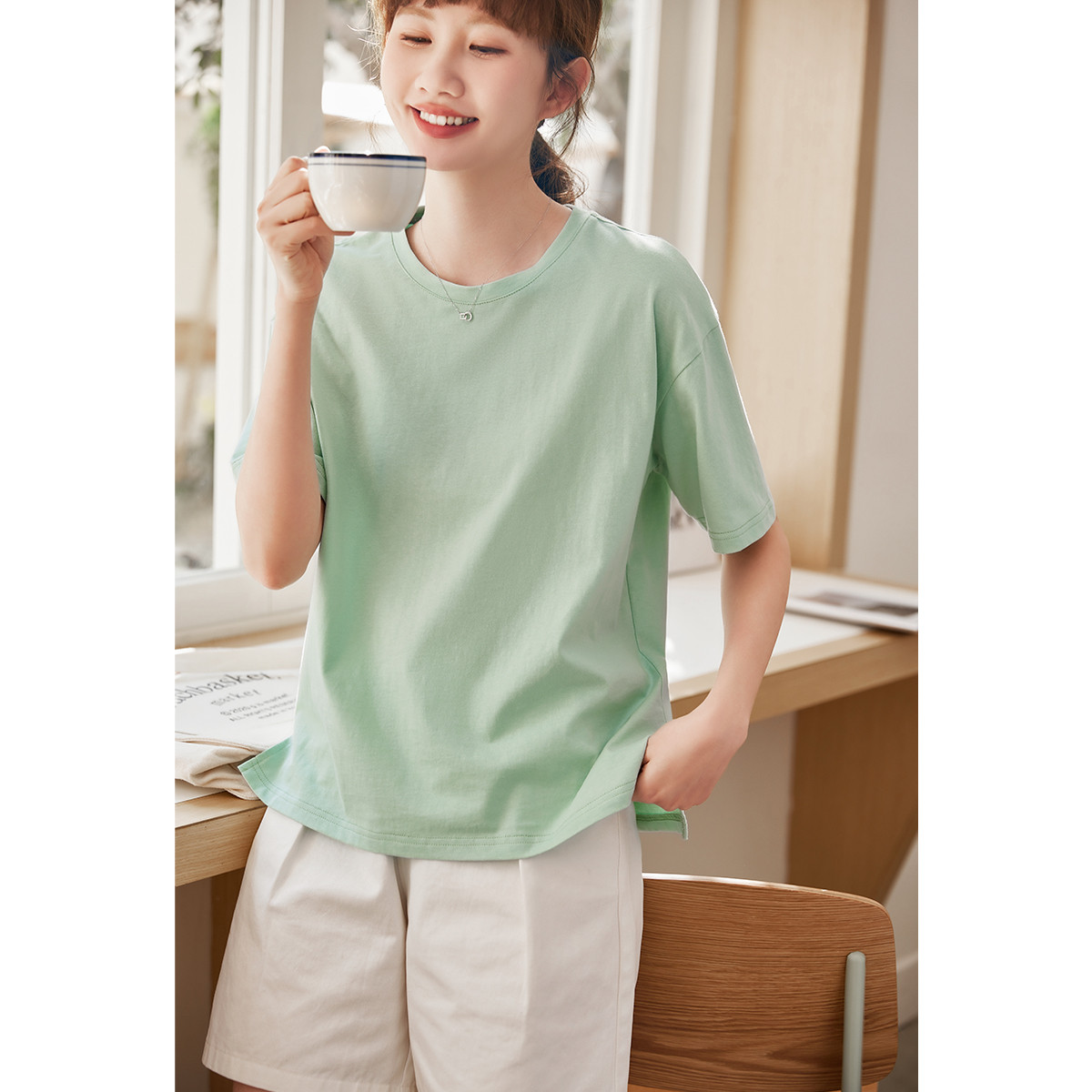 米子旗夏季款圆领纯色大码T恤女宽松休闲短袖上衣 527898