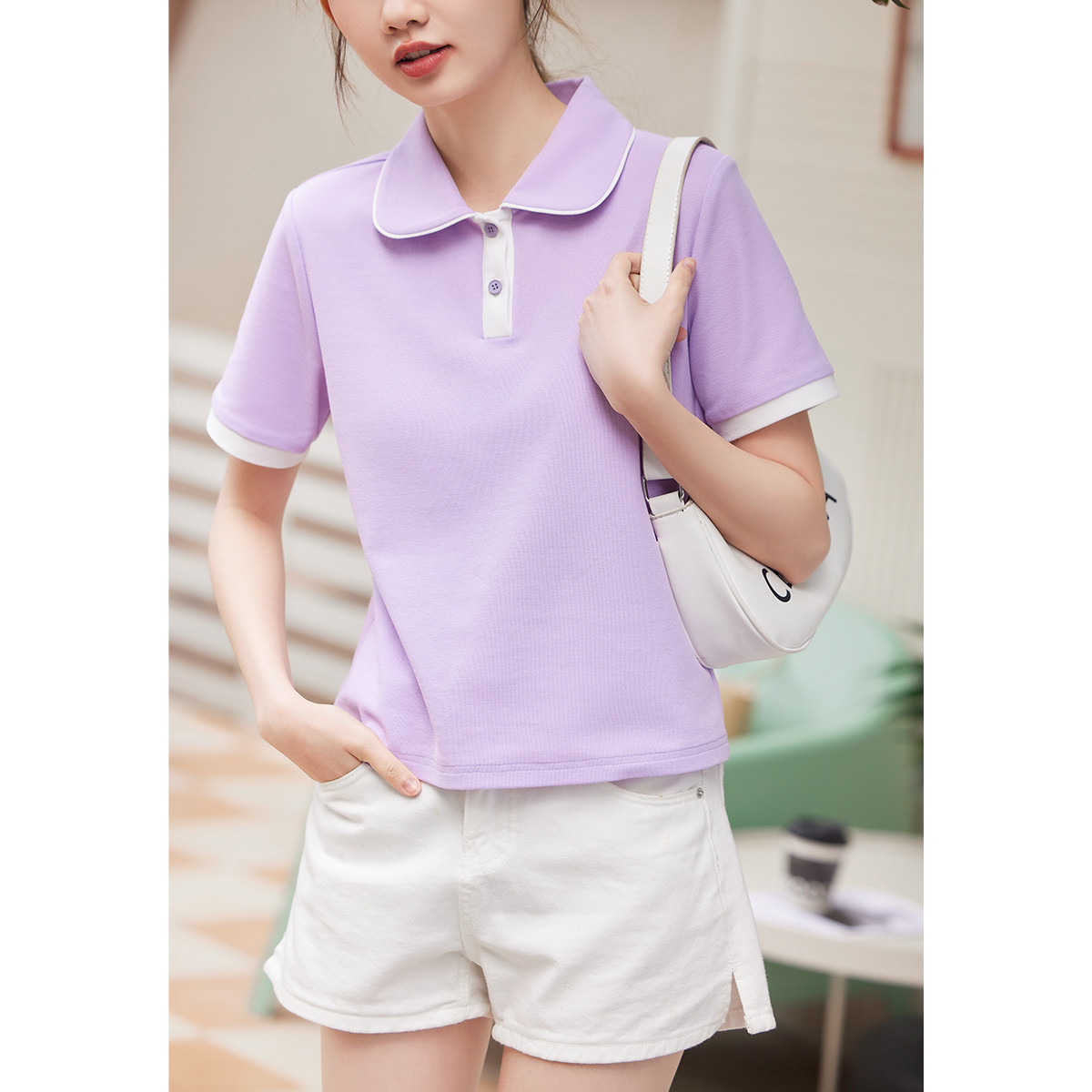 米子旗夏季款女polo领撞色翻领T恤短袖上衣 816218