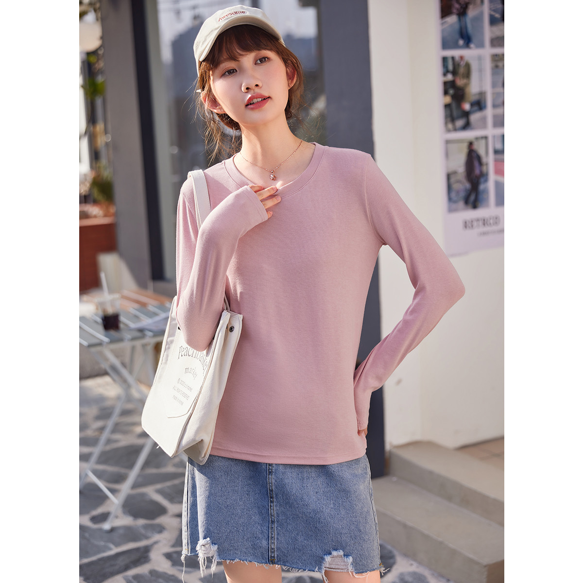 米子旗春秋季款圆领长袖T恤女百搭柔软宽松长袖上衣 644506