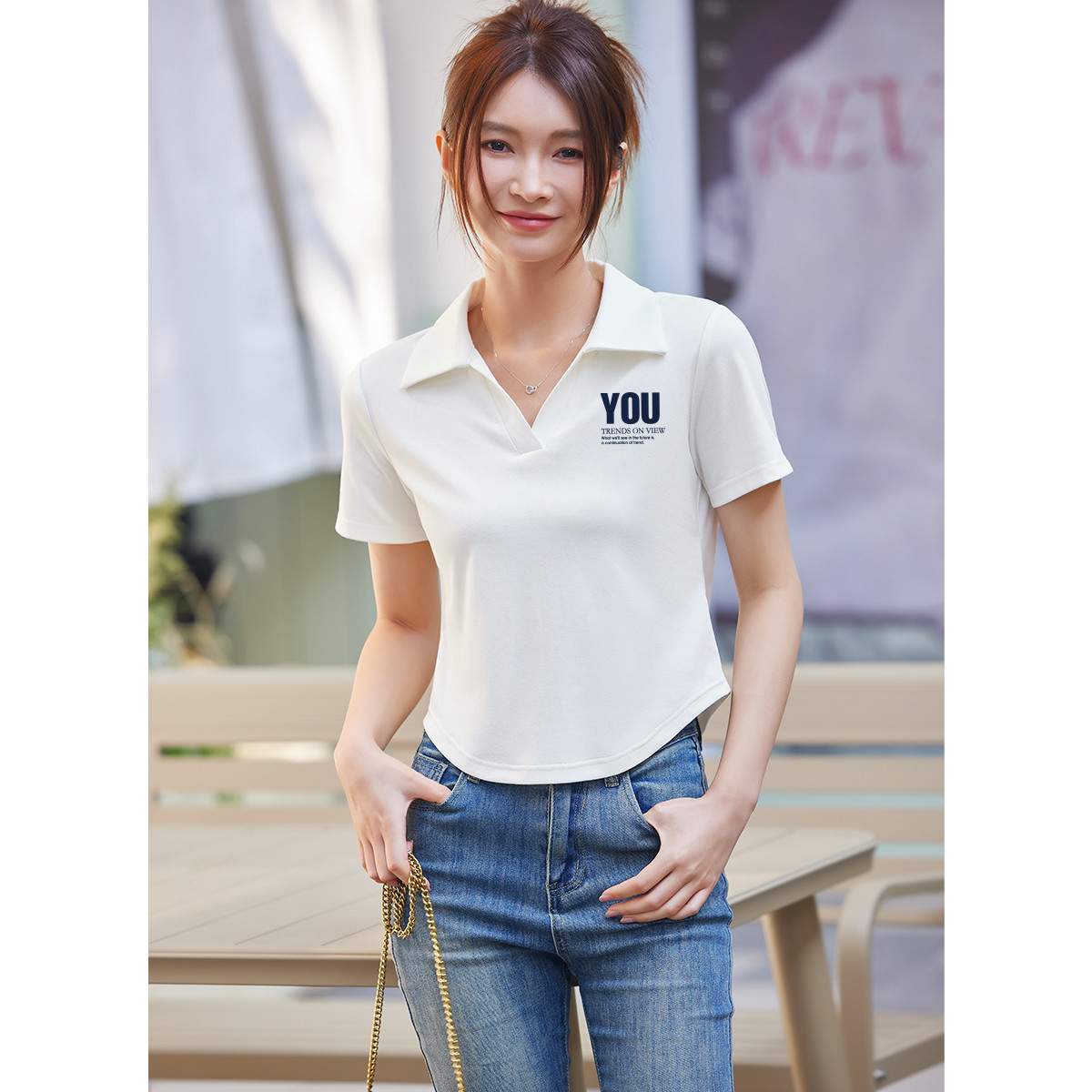 米子旗夏季款polo领印花T恤女短款修身短袖上衣 701530