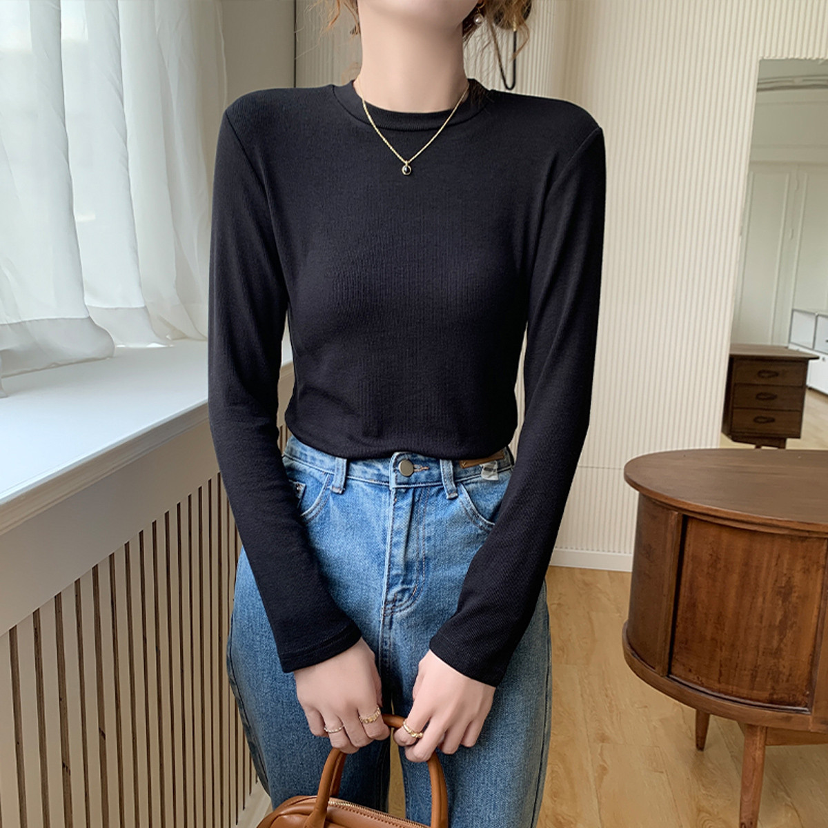 针织长袖t恤女内搭螺纹棉纯色内搭小立领打底衫女上衣 706307