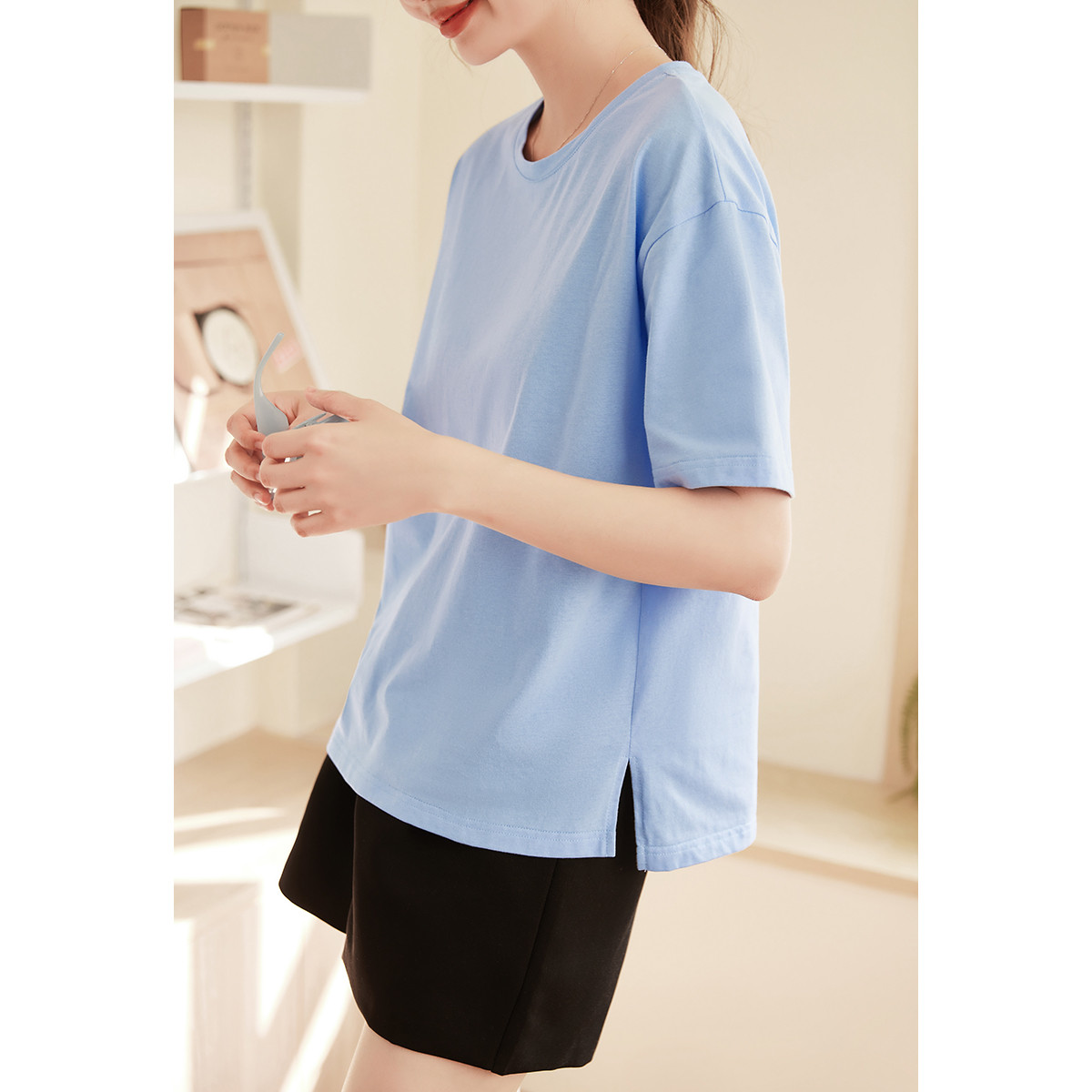 米子旗夏季款圆领纯色大码T恤女宽松休闲短袖上衣 531994