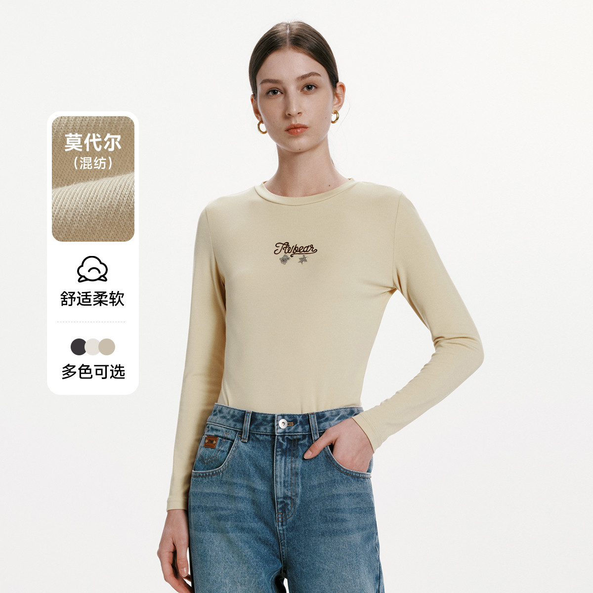 【柔软】小熊长袖T恤桑蚕丝混纺打底衫内搭上衣 537345