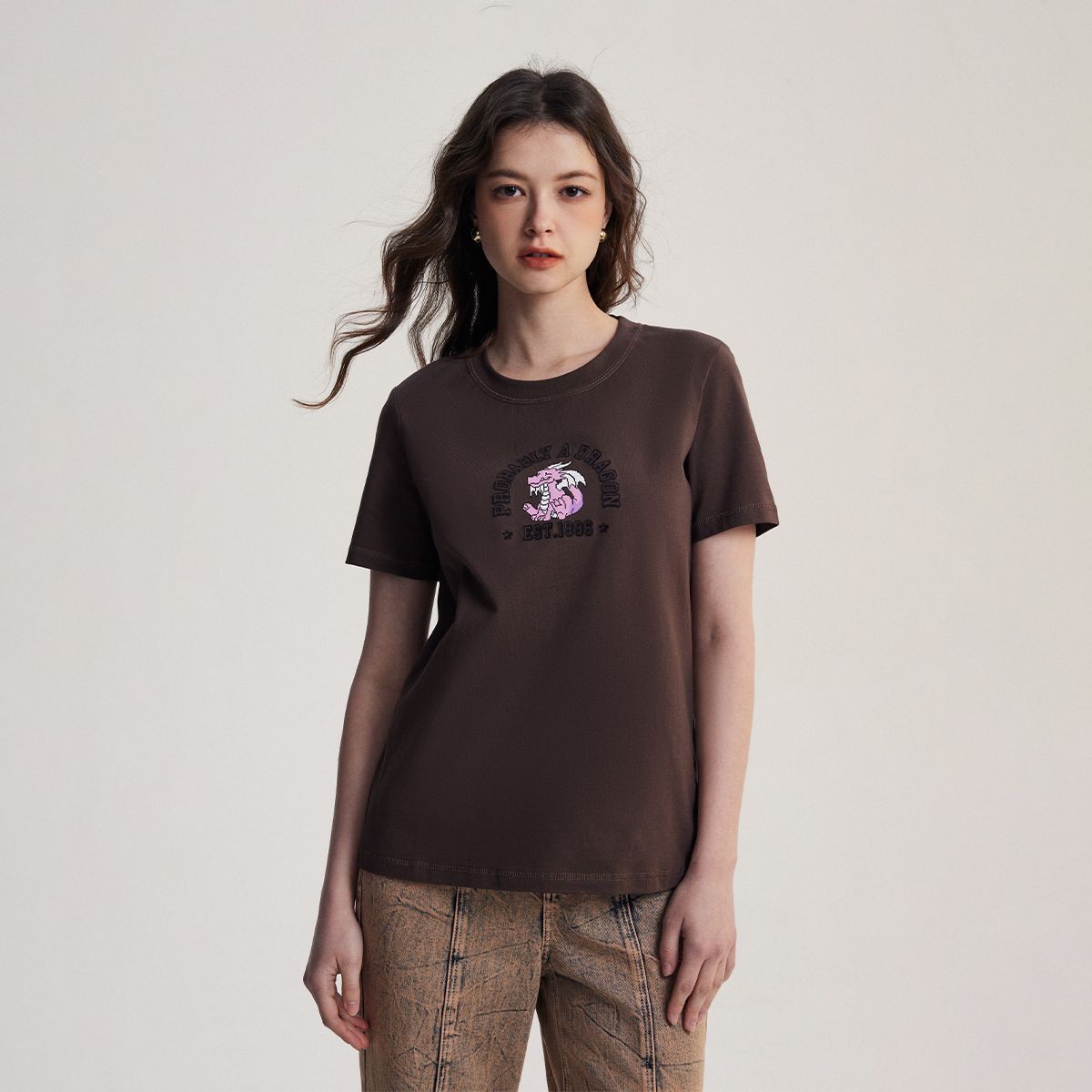 【休闲百搭】年夏季简约圆领印花刺绣短袖T恤女 010202