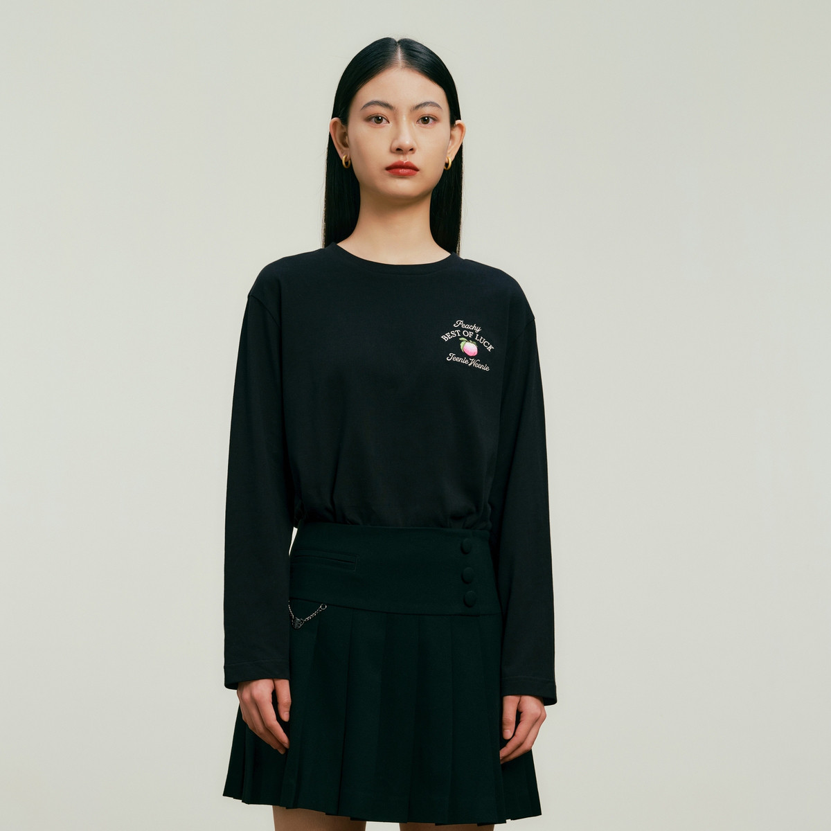 米子旗春秋款圆领女式T恤纯色宽松下摆开叉设计长袖上衣 544474