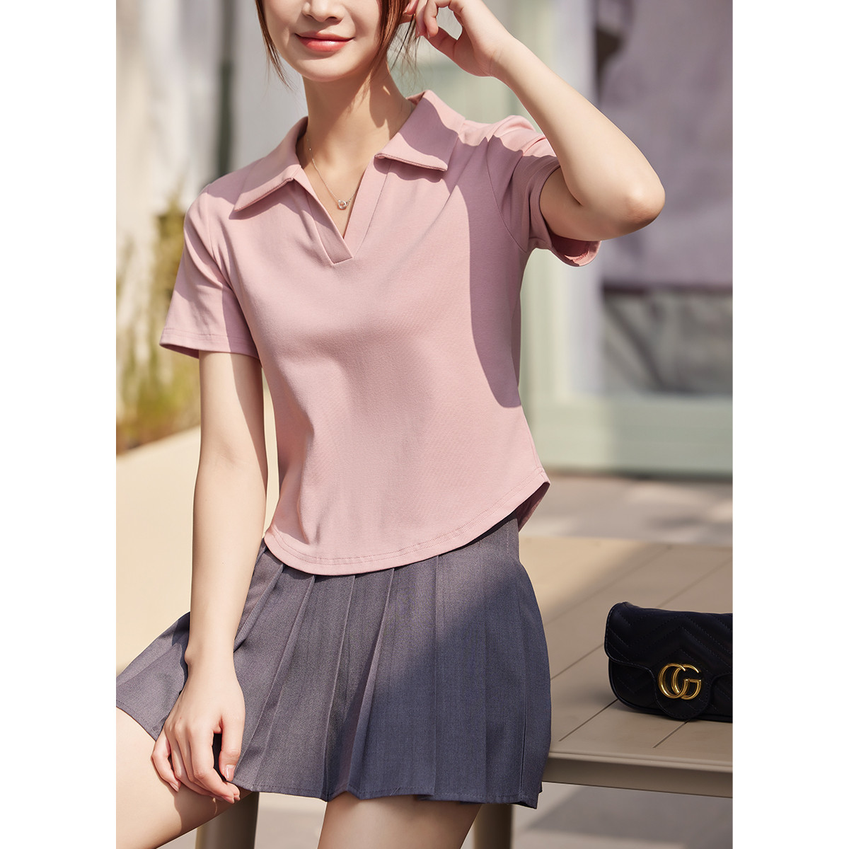 米子旗夏季款polo领纯色T恤女短款修身短袖上衣 705626