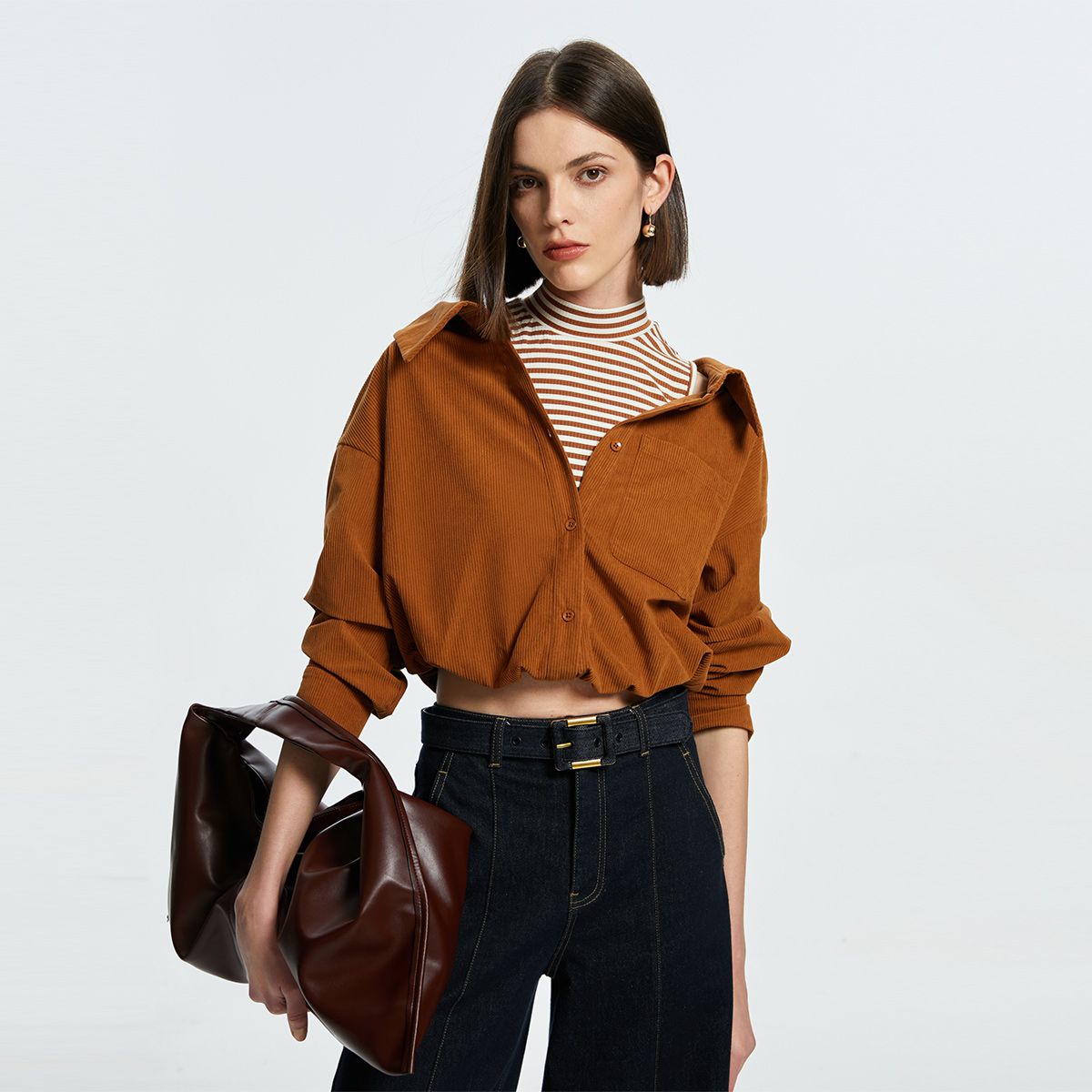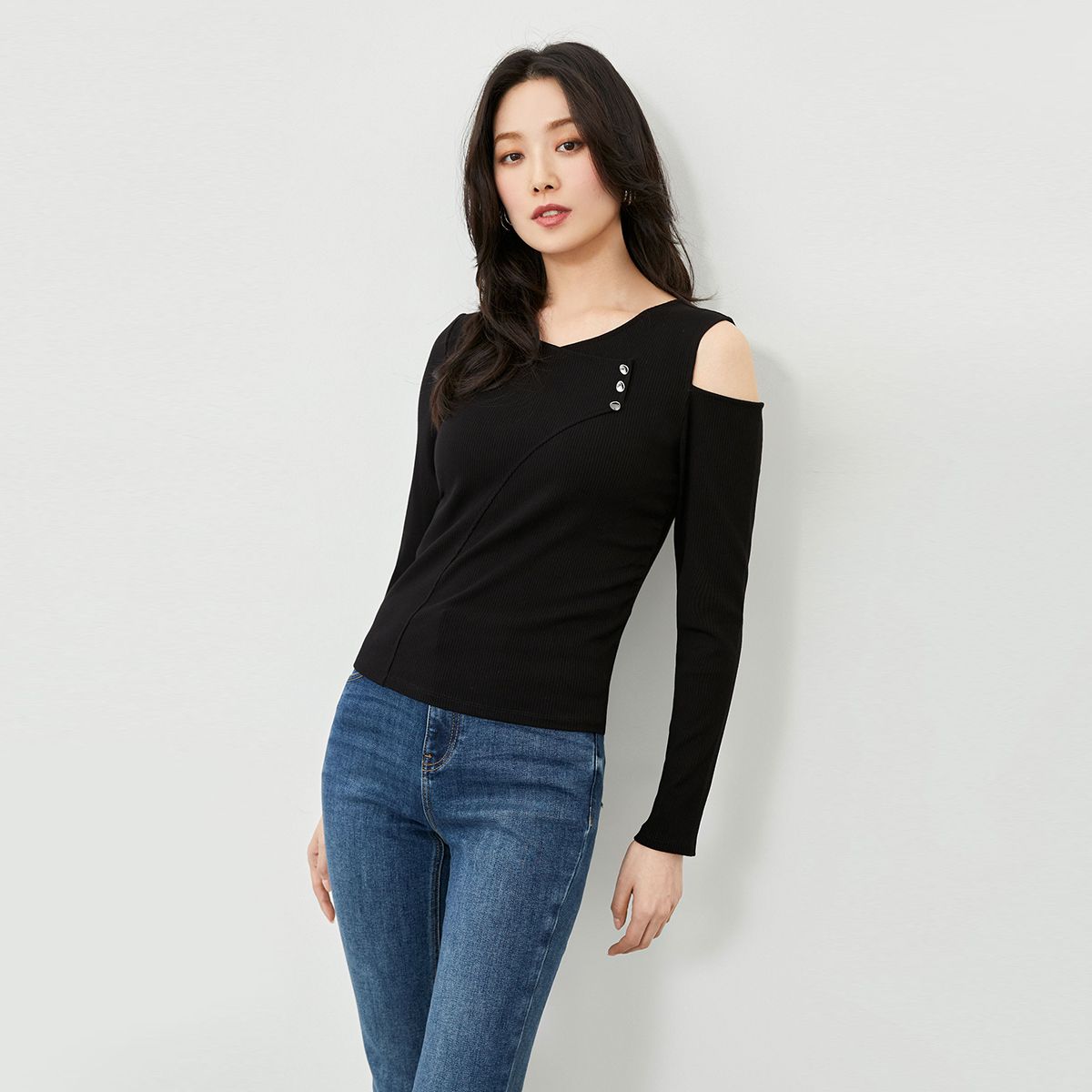 【一字领设计】夏季一字领弹力修身短款长袖T恤女 690970