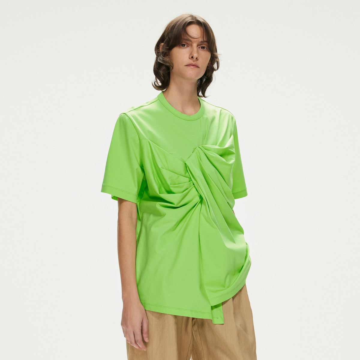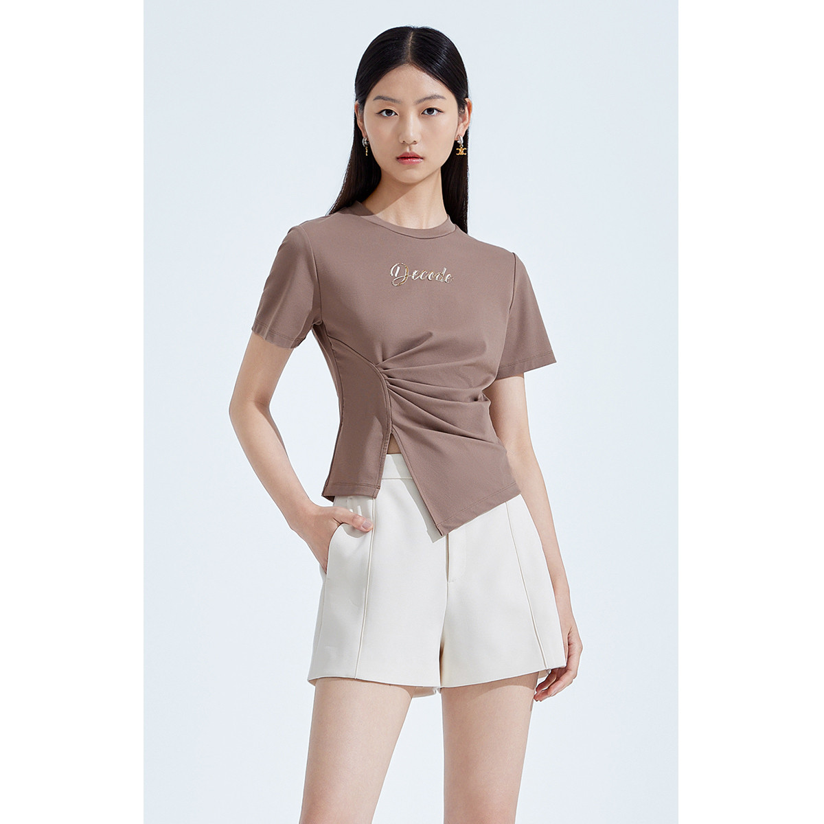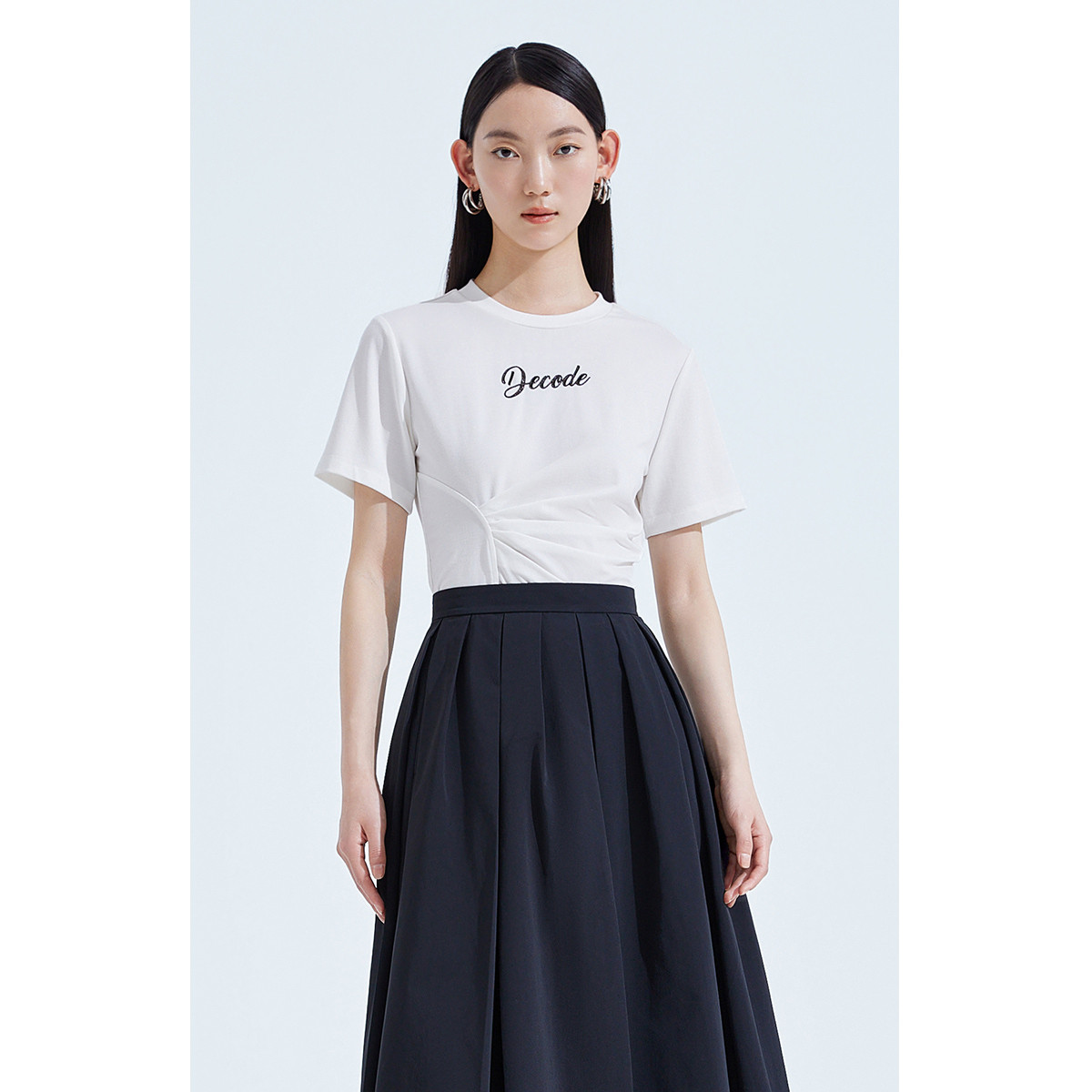 夏装刺绣设计感上衣不规则收褶短袖t恤女 076431