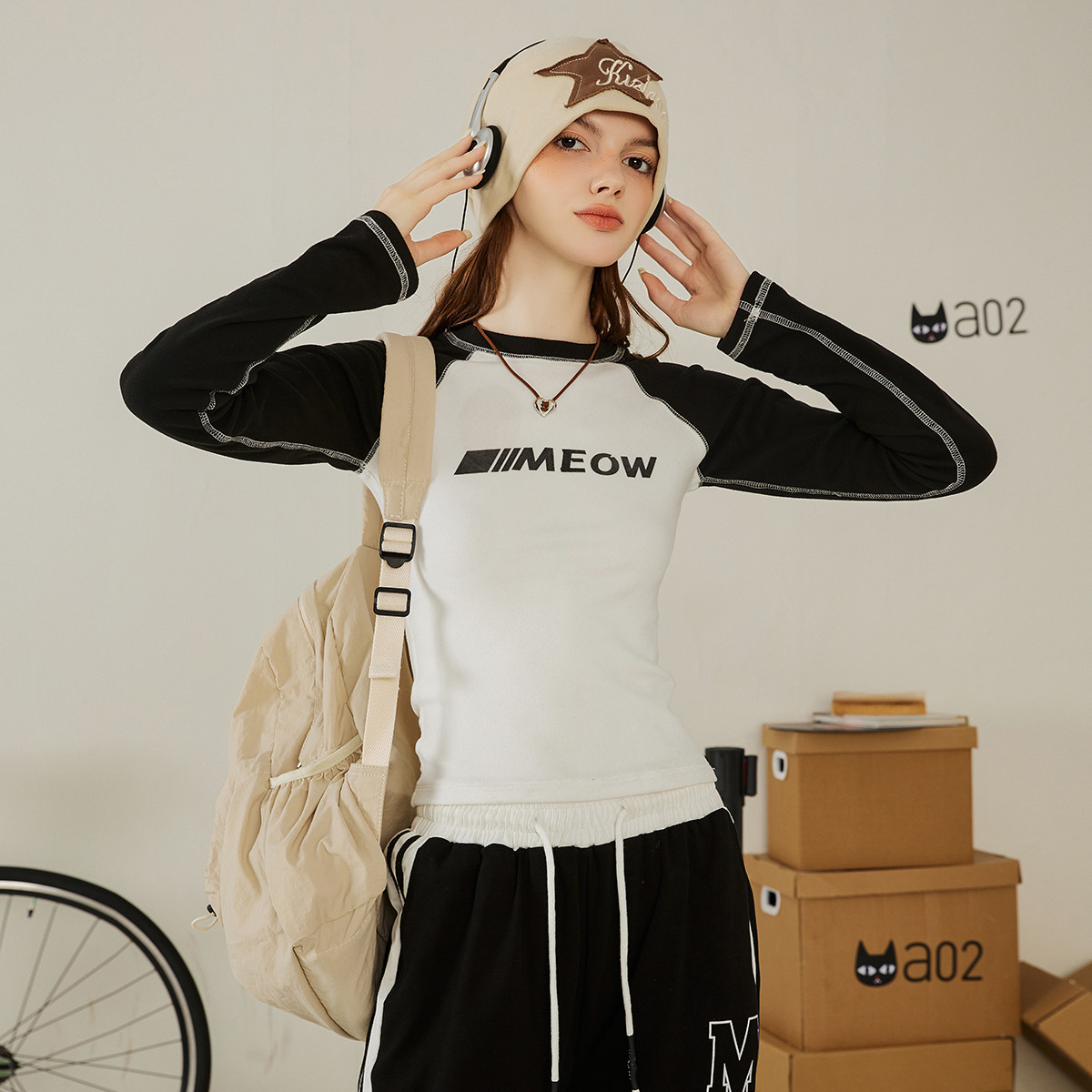 长袖T恤小熊女装长袖T恤春秋款美式撞色插肩袖打底衫 697089