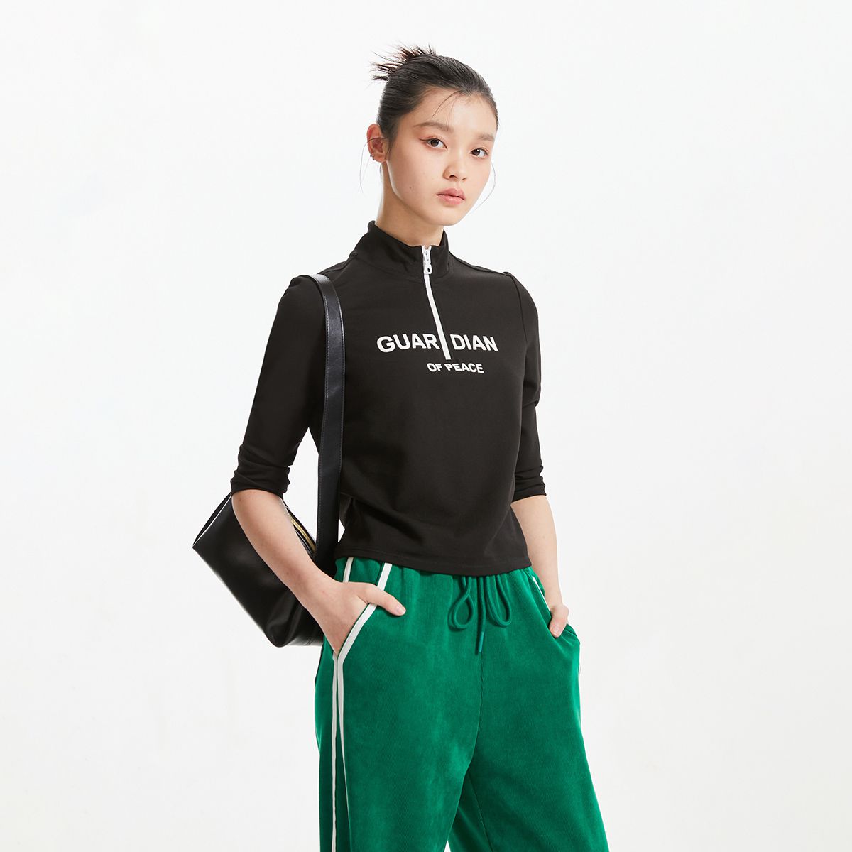 【专柜】春夏半高领七分袖设计运动休闲上衣T恤气质百搭时尚 361233