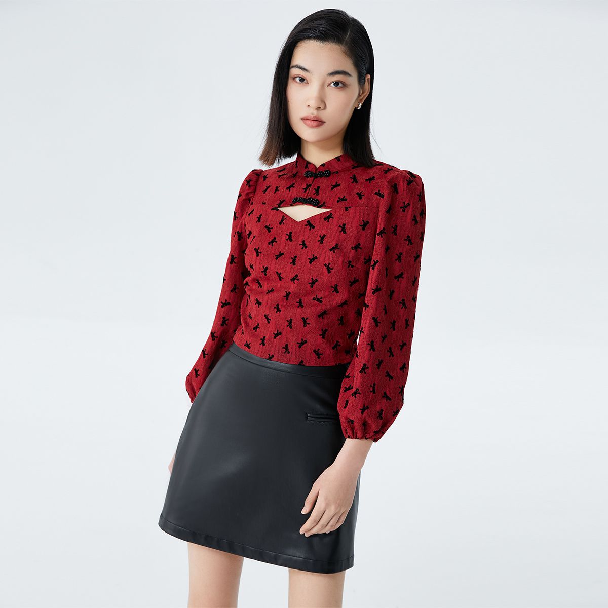 短款立领盘扣七分泡泡袖新中式国潮上衣女气质百搭时尚春夏 736081
