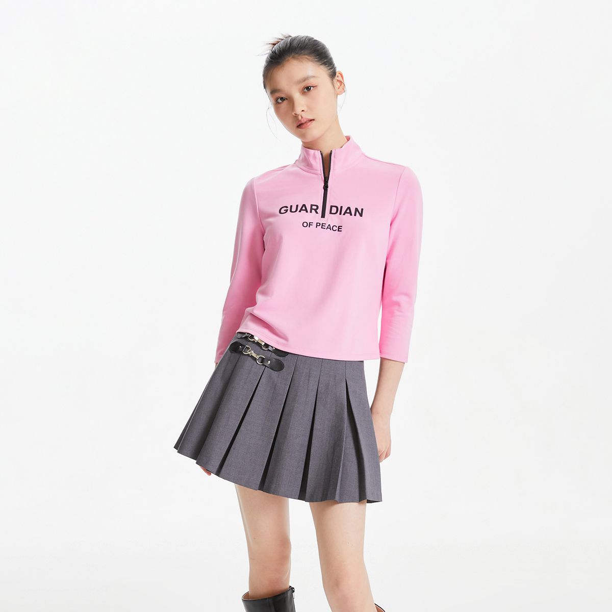 【专柜】春夏半高领七分袖设计运动休闲上衣T恤气质百搭时尚 394001