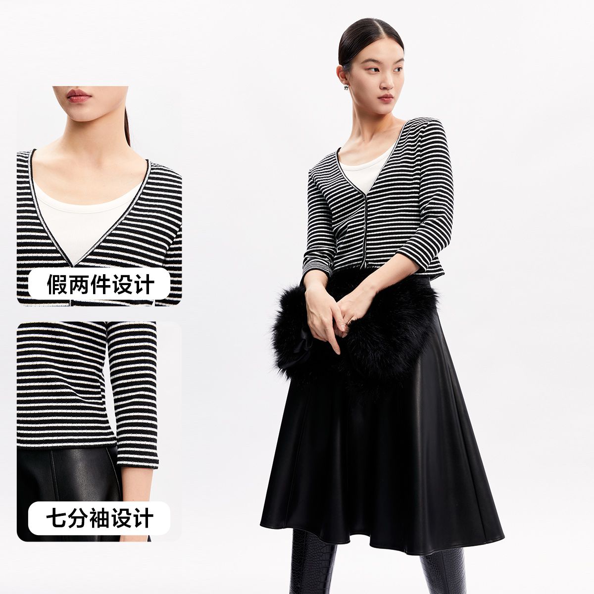 【假两件设计】春秋专柜款条纹休闲简约气质T恤上衣女 466065