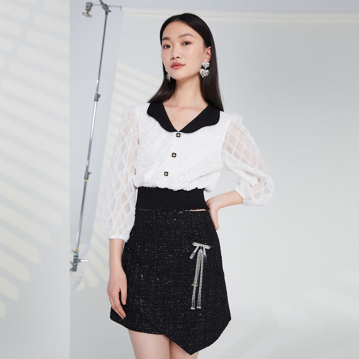 【亮片装饰】春秋专柜款复古娃娃领蕾丝T恤衬衫女 251281