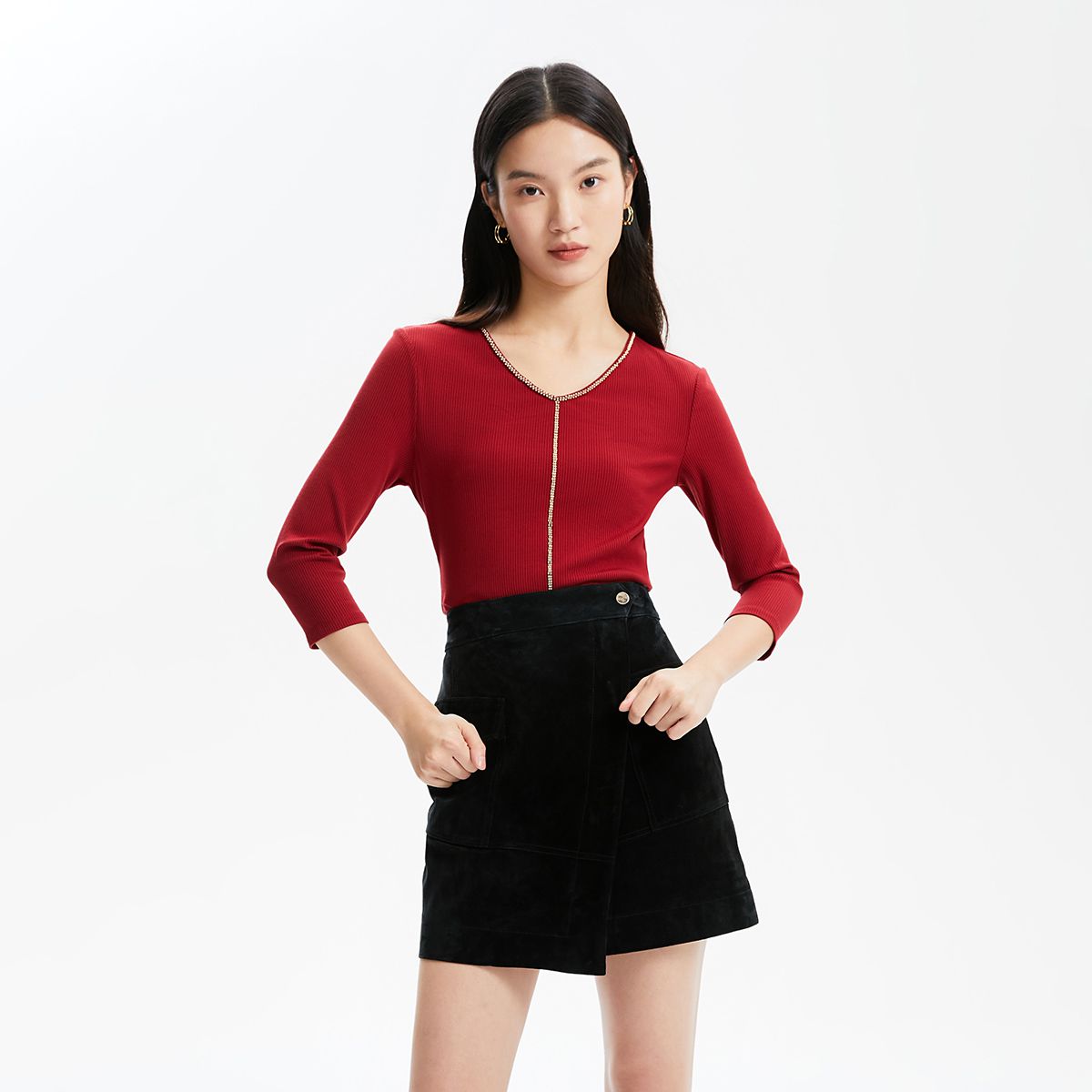 圆领七分袖T恤修身合体上衣女气质百搭时尚春夏 140881