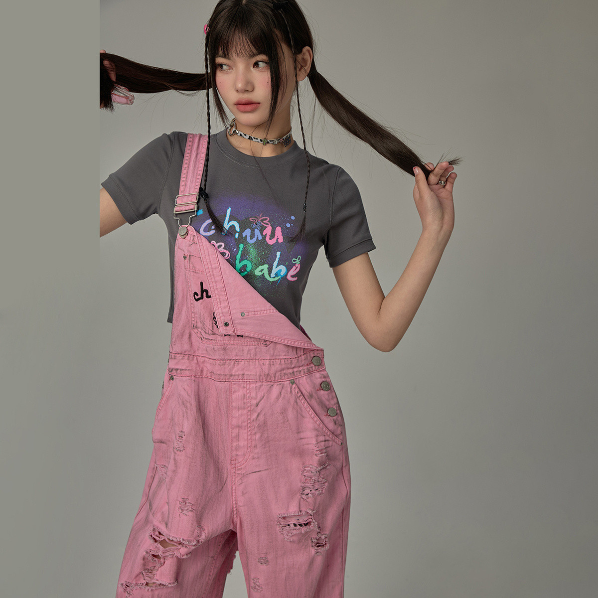 甜辣印花T恤女2025春夏短款修身百搭上衣 459795