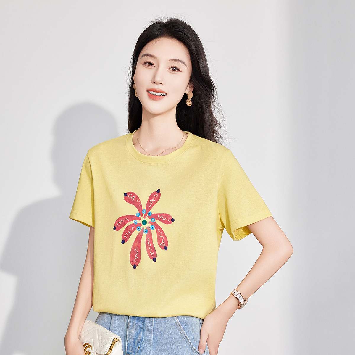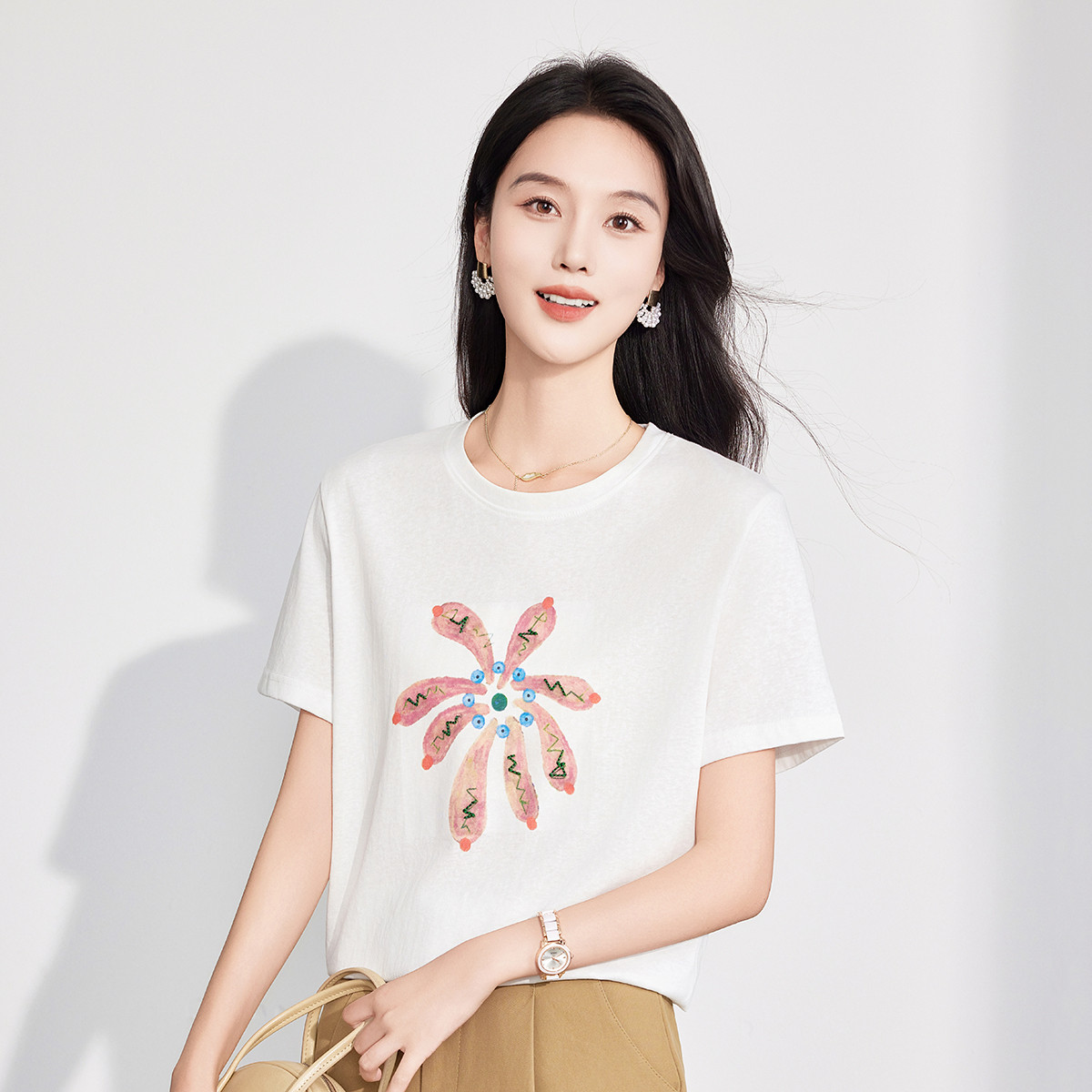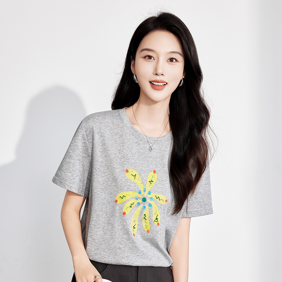 25夏季新款时尚印花短袖女式小个子正肩显瘦T恤高级感百搭上衣 581471
