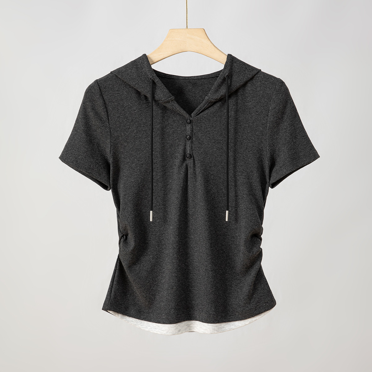 【智性穿搭】时髦针织短袖女连帽2025夏季高级感连帽针织上衣 622559