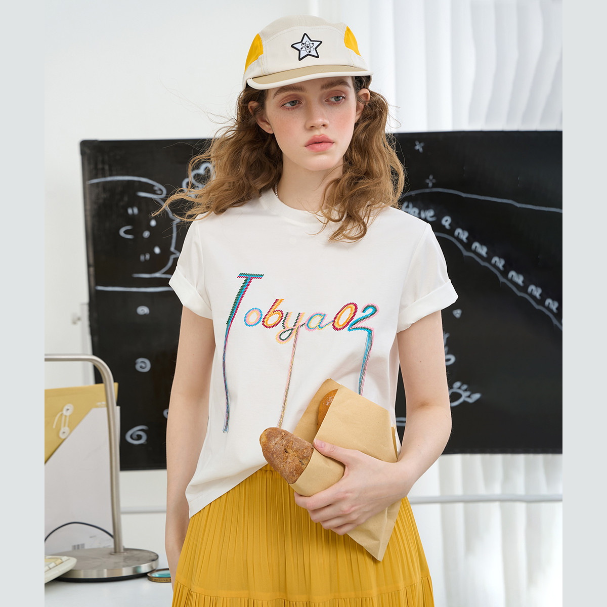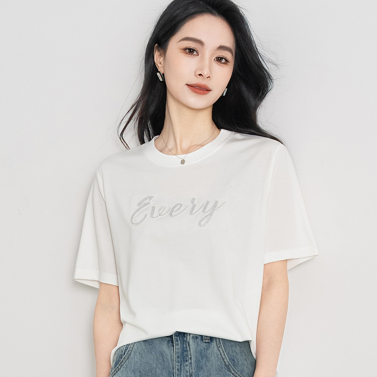 洋气时髦字母刺绣设计感短袖上衣2025夏季休闲百搭女式T恤 358941