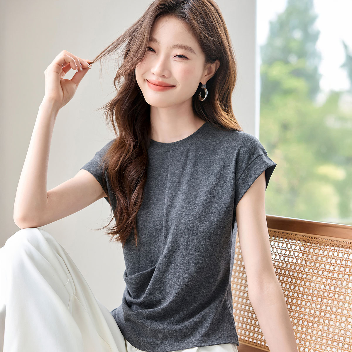 【时髦不单调】夏季圆领简约显瘦女士t恤洋气减龄飞飞袖上衣女 469855