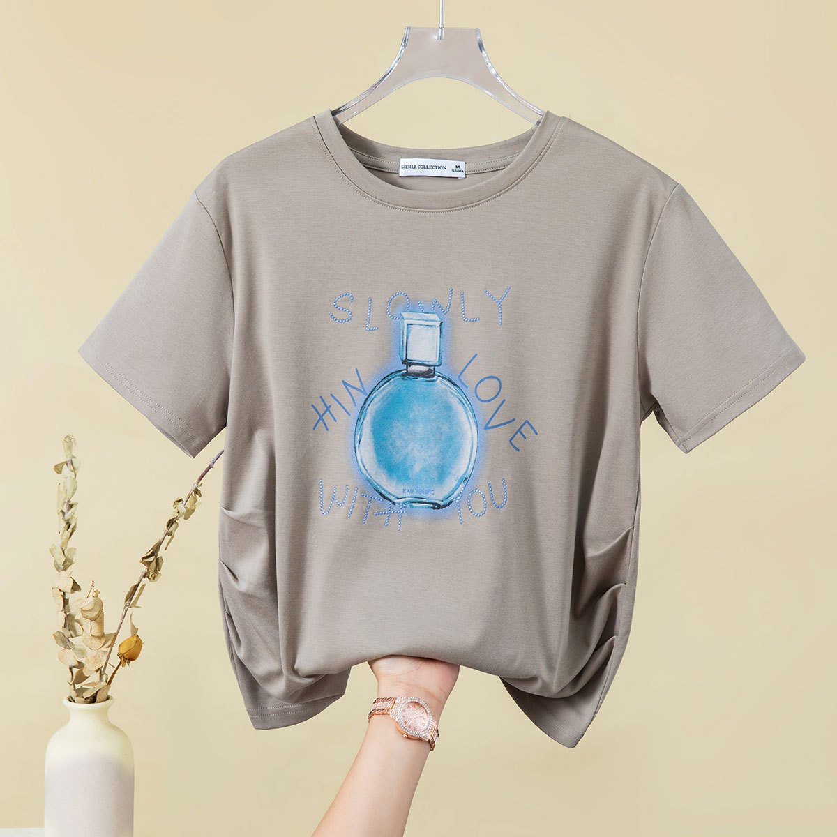 【蕴含云感棉】夏季时尚印花短袖女设计褶皱圆领舒适女式t恤上衣 483167
