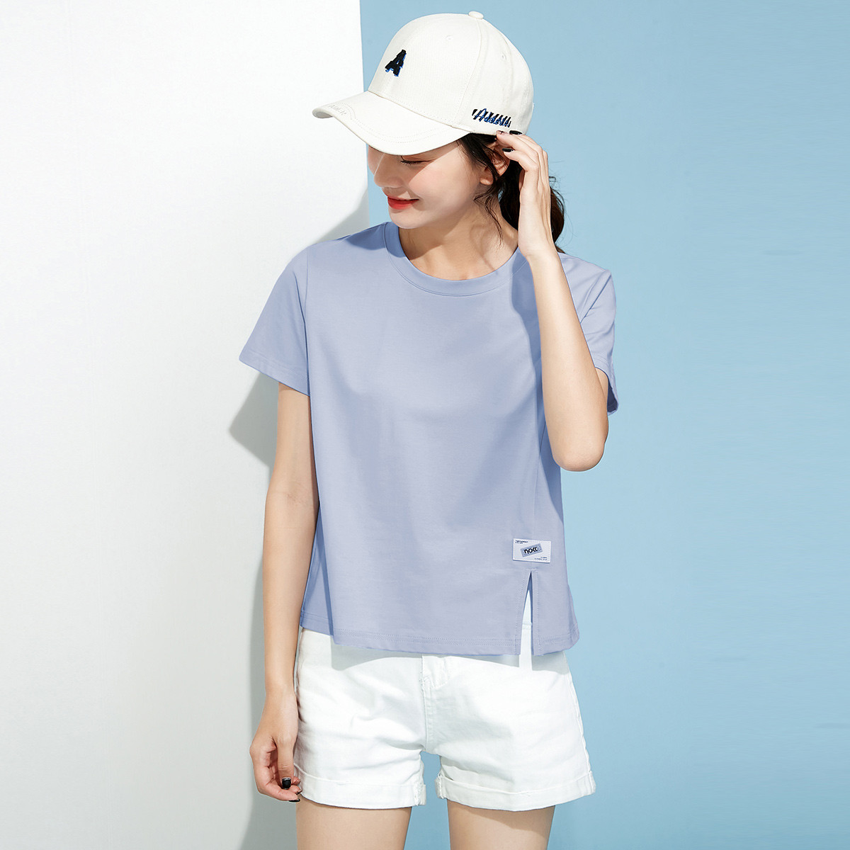 米子旗夏季款圆领纯色T恤女短款修身短袖上衣 003354
