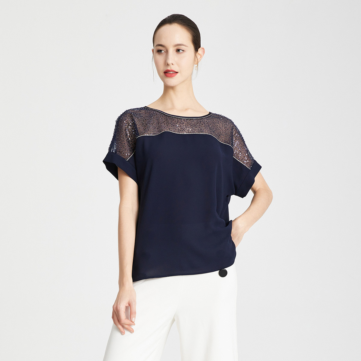 秋季珠绣时尚优雅气质连袖上衣 301407