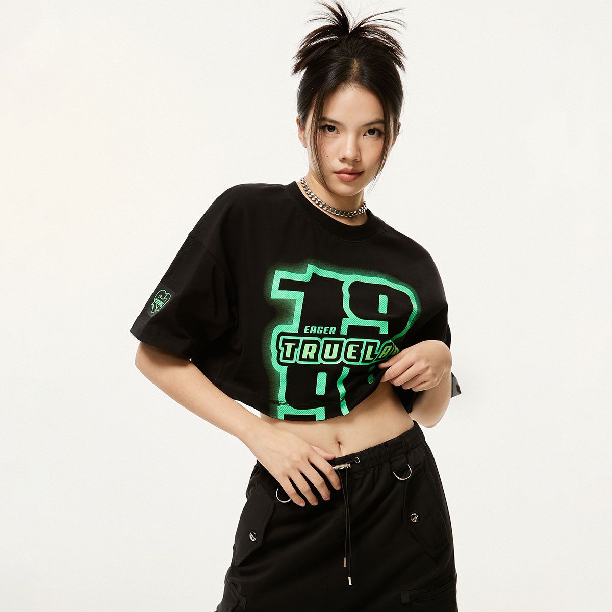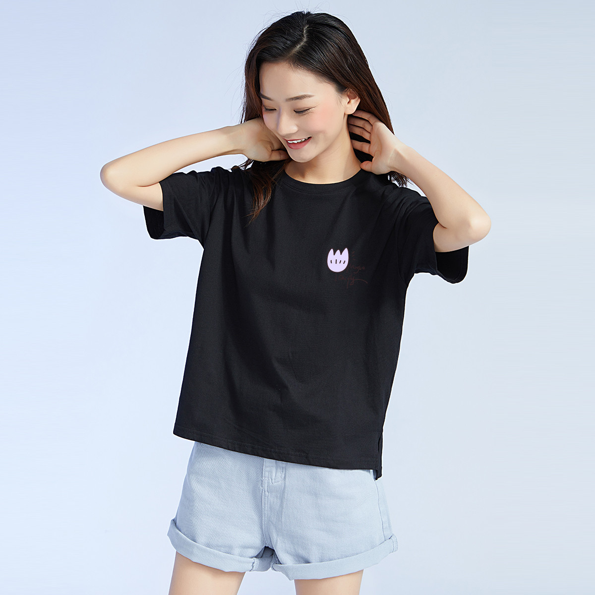 【宽松落肩】夏季印花圆领短款正肩显瘦T恤女 192602