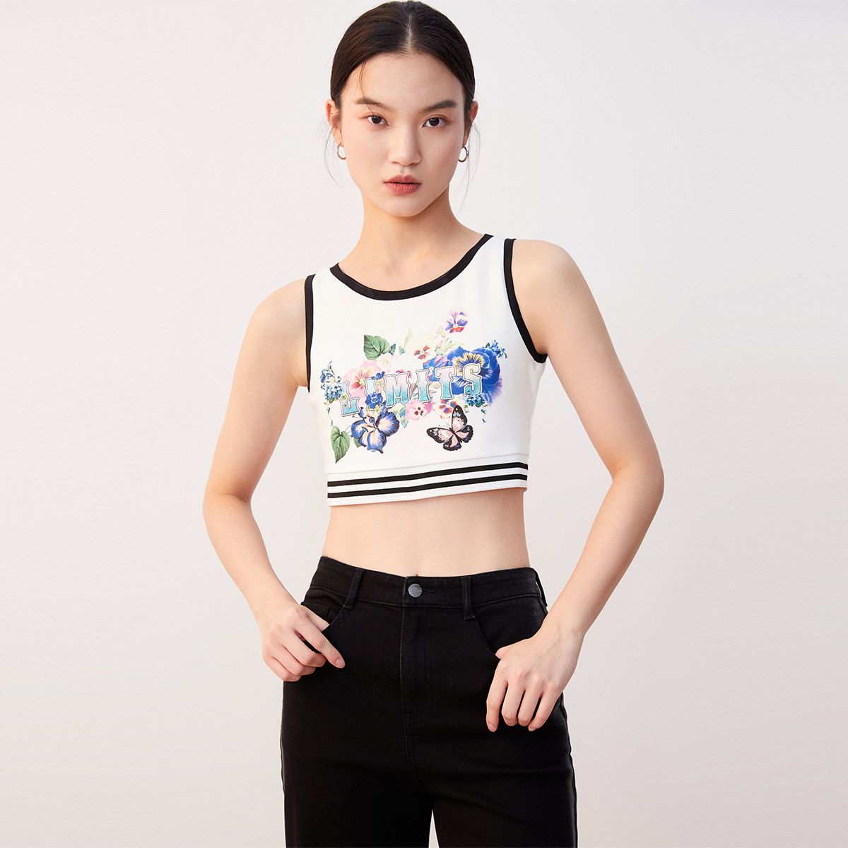 【罗纹吊带背心】春夏甜美减龄专柜款休闲印花背心气质百搭时尚 595793