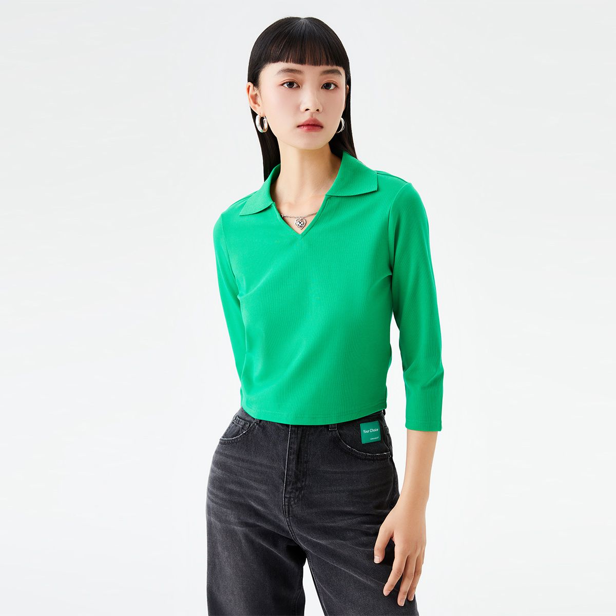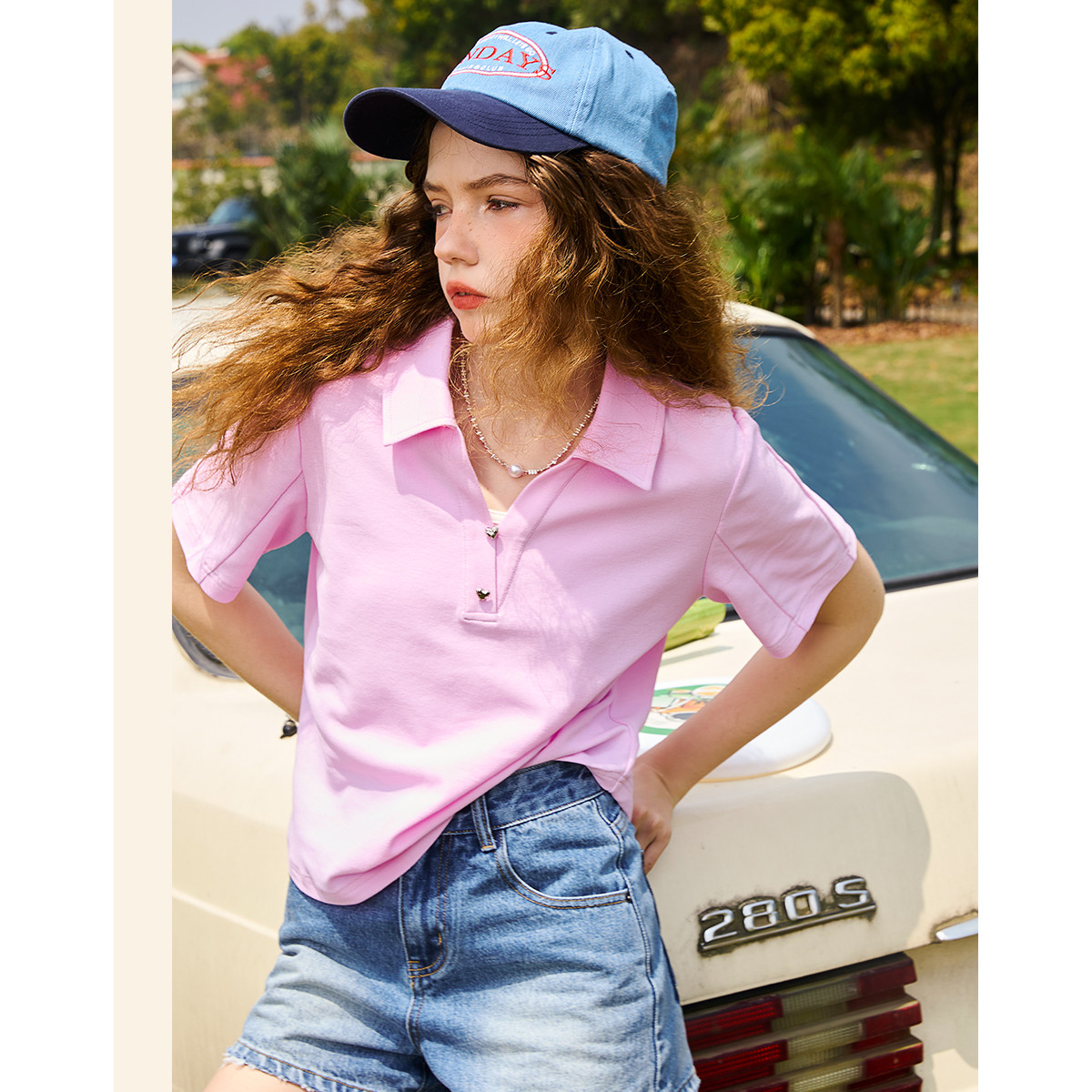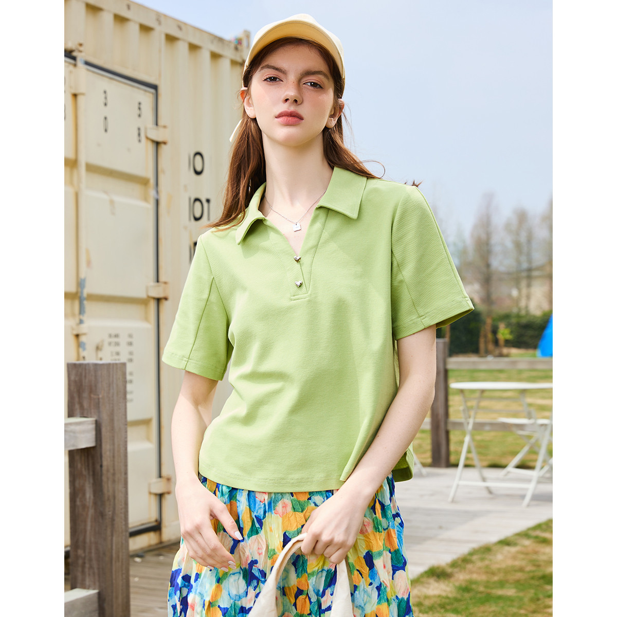 夏季复古POLO领显瘦大码休闲百搭女式T恤 603549