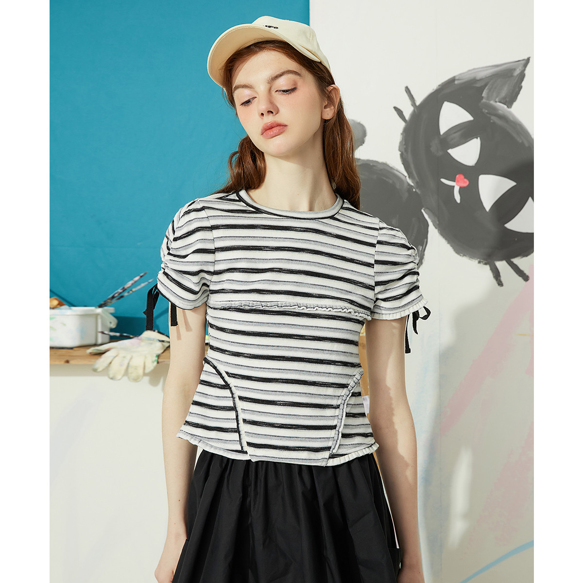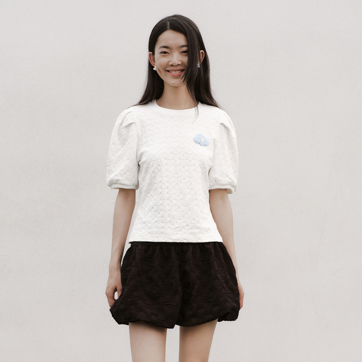 【提花针织】T恤女短袖甜酷提花泡泡袖可爱针织上衣 978433