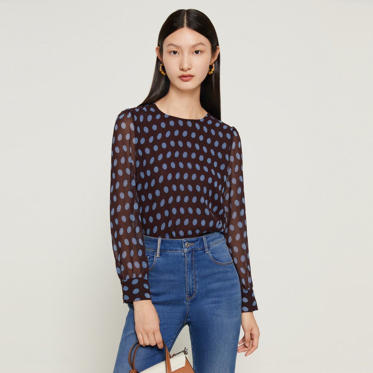 JZ玖姿商场同款印花真丝小衫女装春季桑蚕丝单上衣 254348