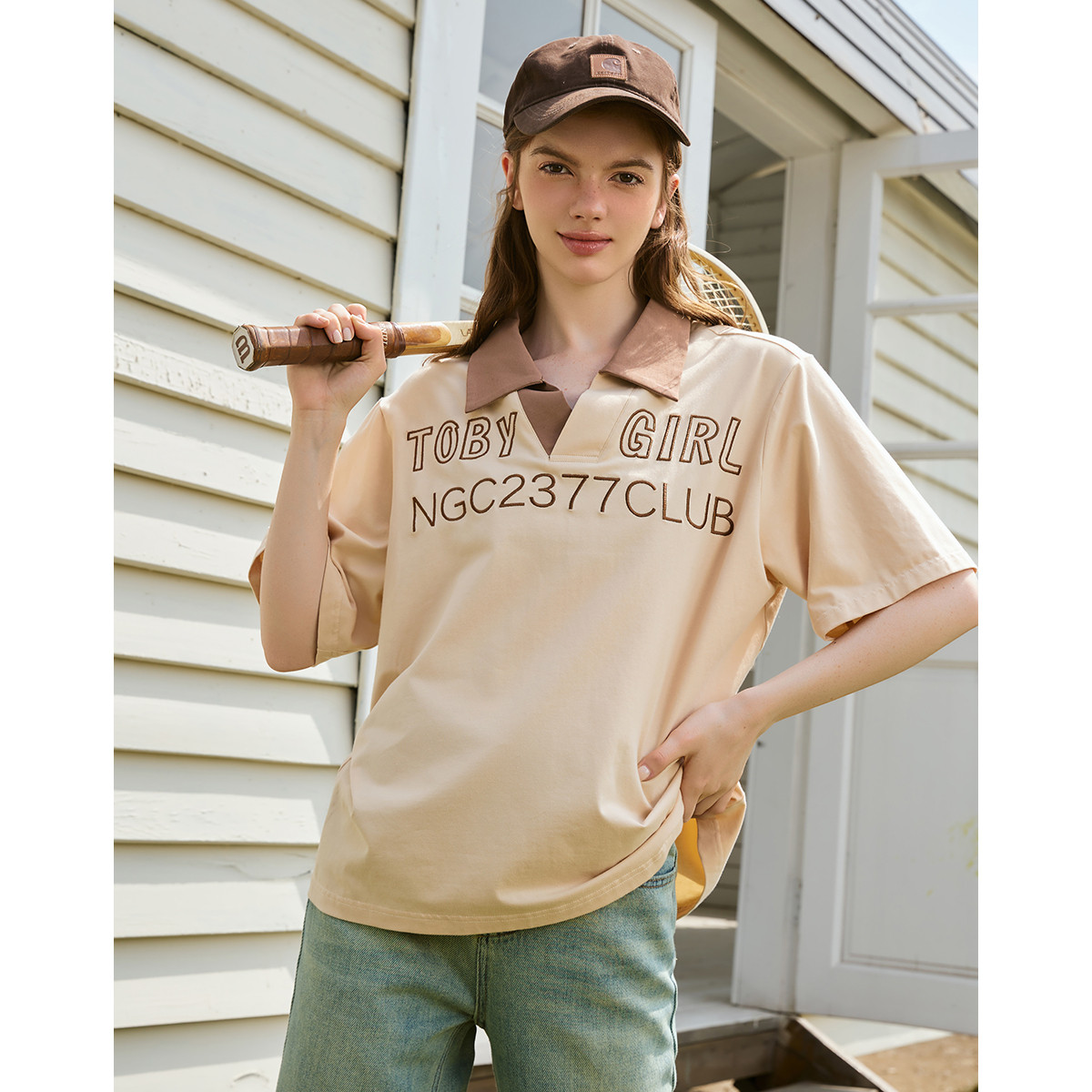 夏季修身显瘦字母印花短袖上衣Polo领女式T恤 654621