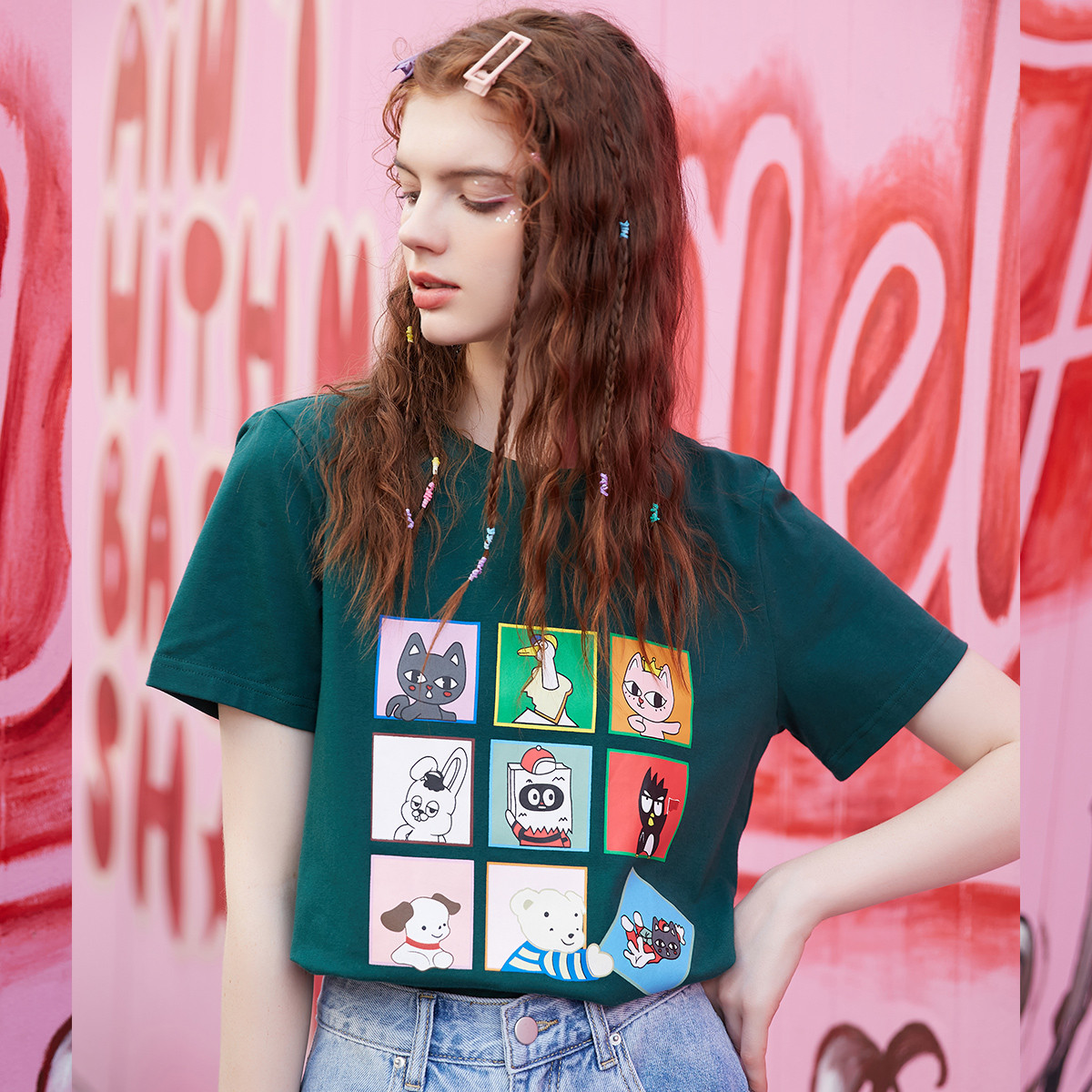 【100%棉】卡通字母短袖夏季休闲国潮牌美式宽松圆领T恤男女同款 219735