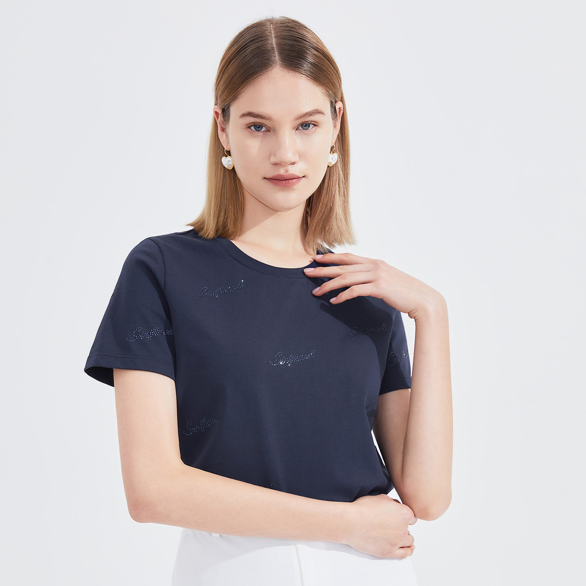 JZ玖姿夏季上衣烫钻时尚爆款短袖T恤女 762316