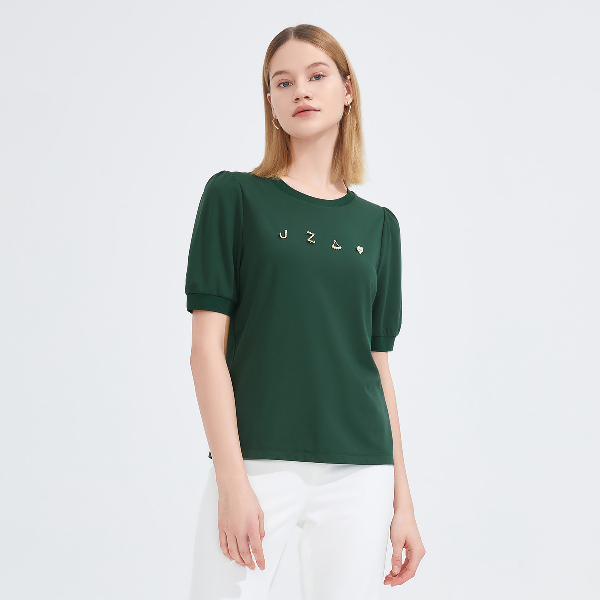 玖姿夏季简约圆领立体爱心字母钉珠T恤女 971660