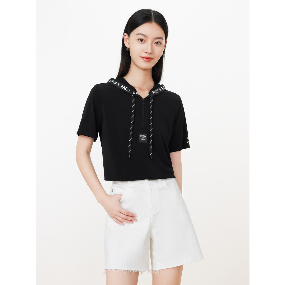 JZ玖姿商场同款轻运动拉链帽衫夏季休闲短袖t恤 385996