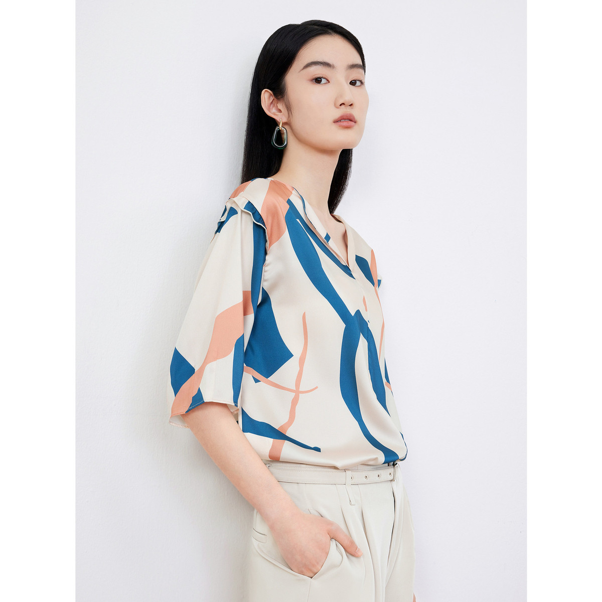 JZ玖姿商场同款印花女装夏季短袖V领T恤JWCX80342 178252