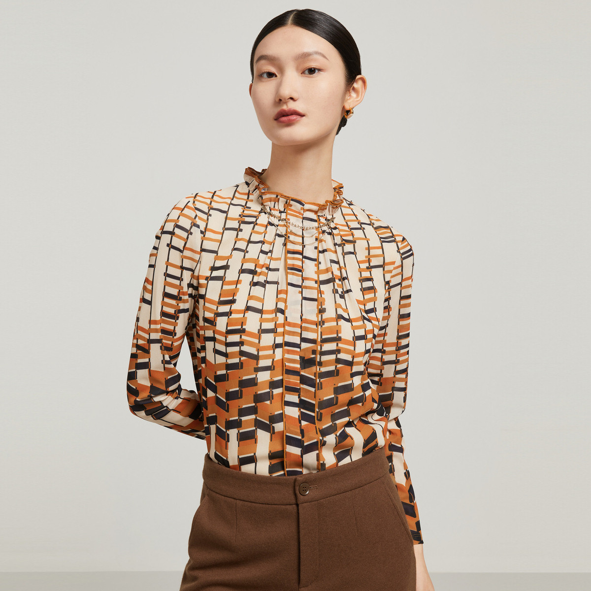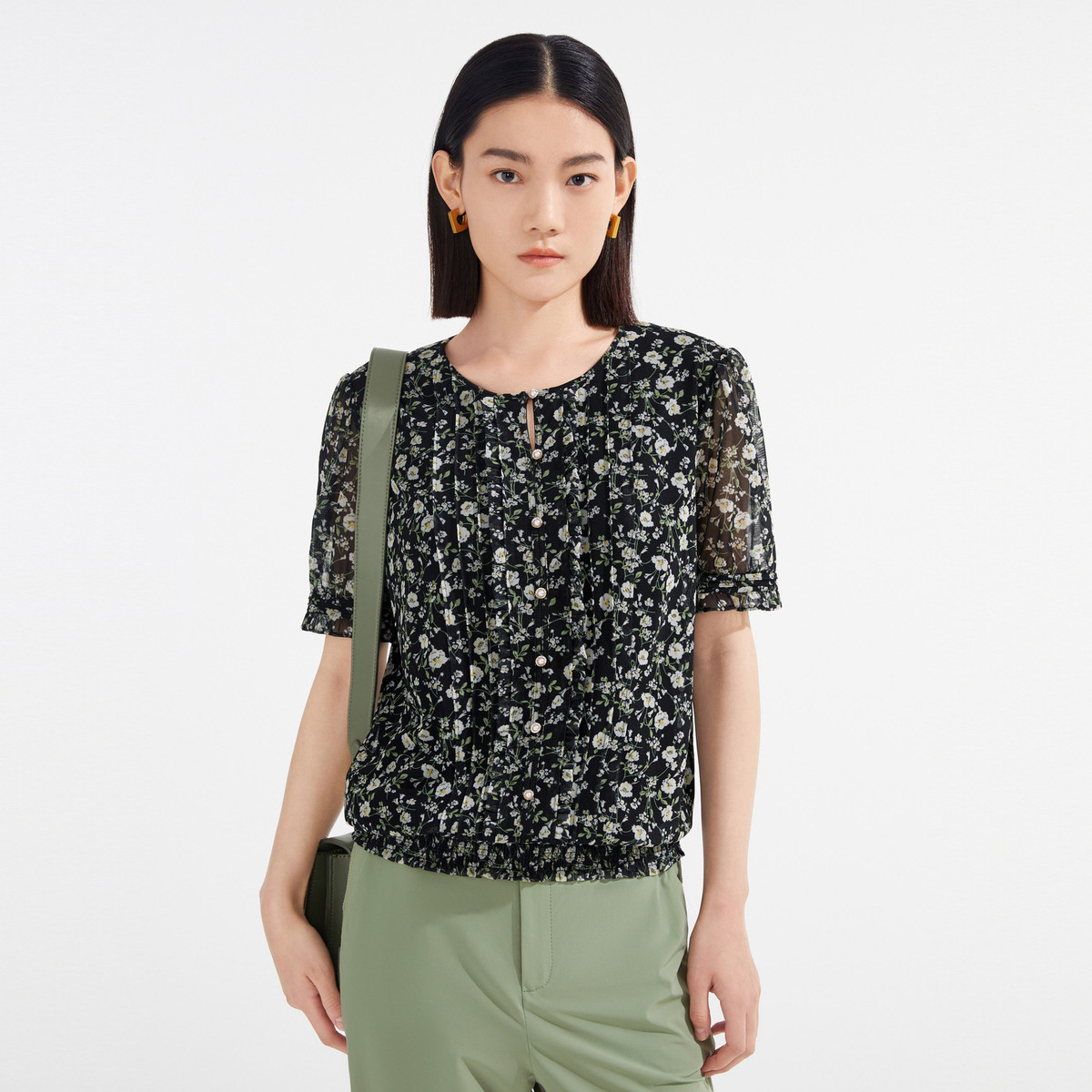 JZ玖姿商场同款印花网纱小衫女装夏季压褶上衣JWCX80396 137292