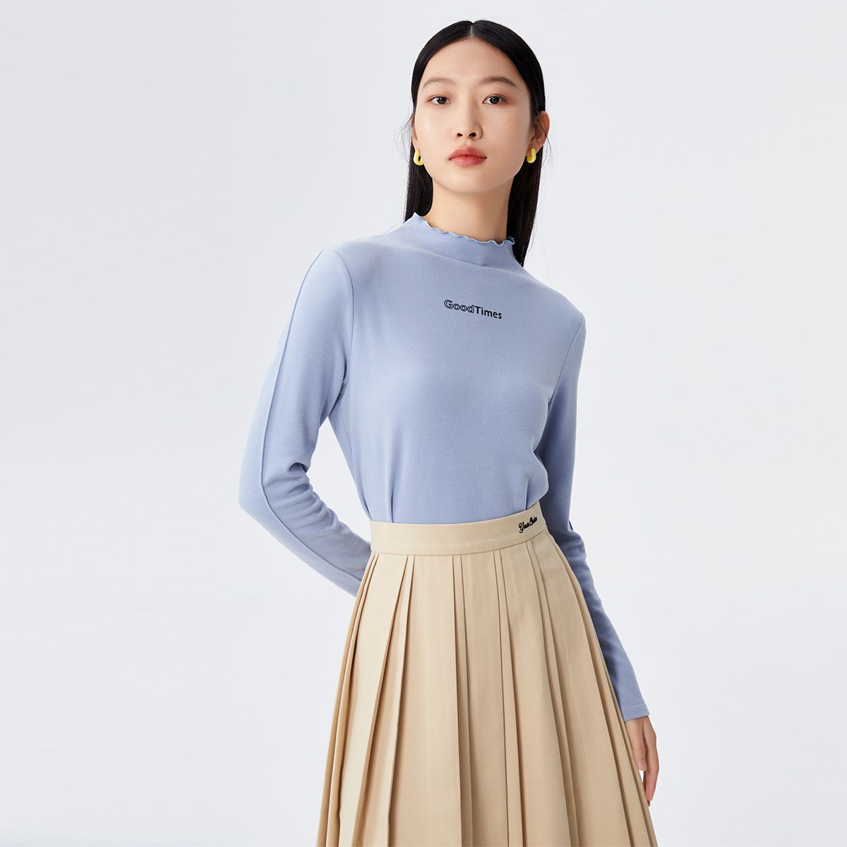 小熊春秋款打底衫美雅碧修身圆领内搭白色女装 832641