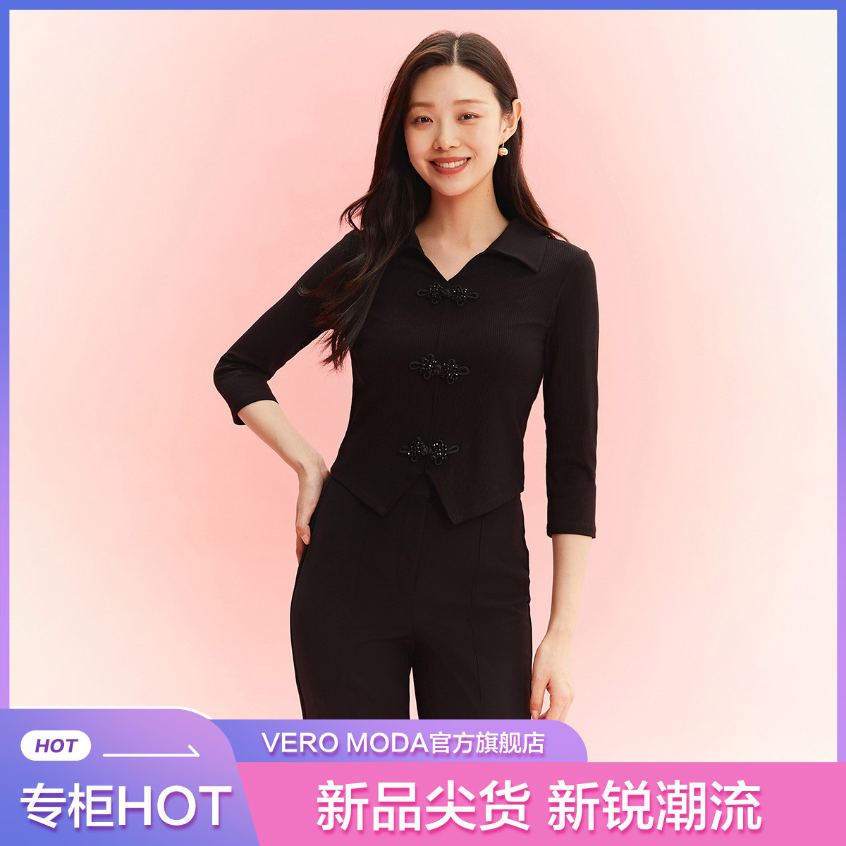 【新中式】春夏专柜款翻领七分袖盘扣上衣女气质百搭时尚 322513
