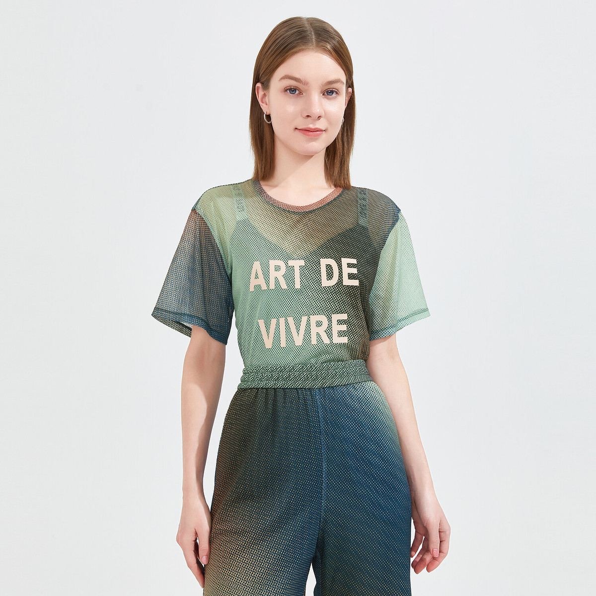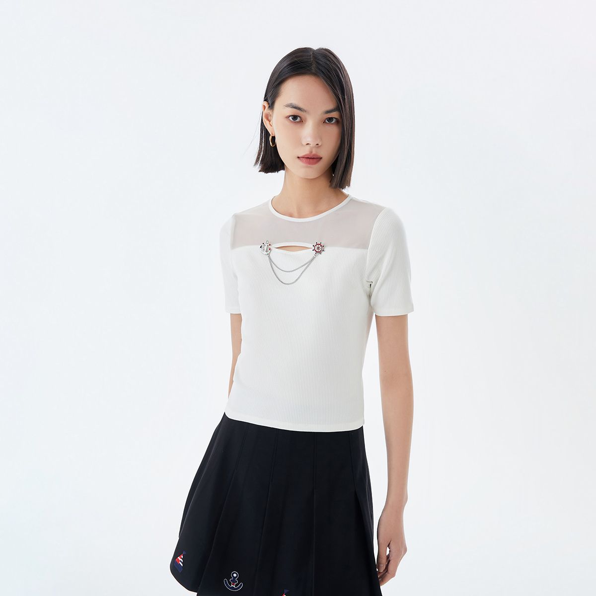 玖姿商场同款夏季潮酷网纱透视内搭款女式T恤 558220
