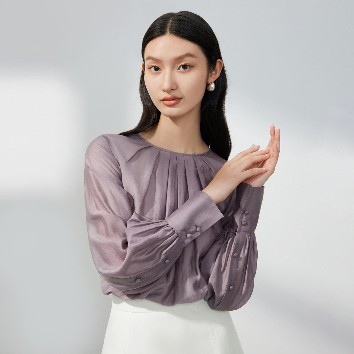 JZ玖姿褶皱小衫女装春季肌理设计感洋气上衣紫色 060940