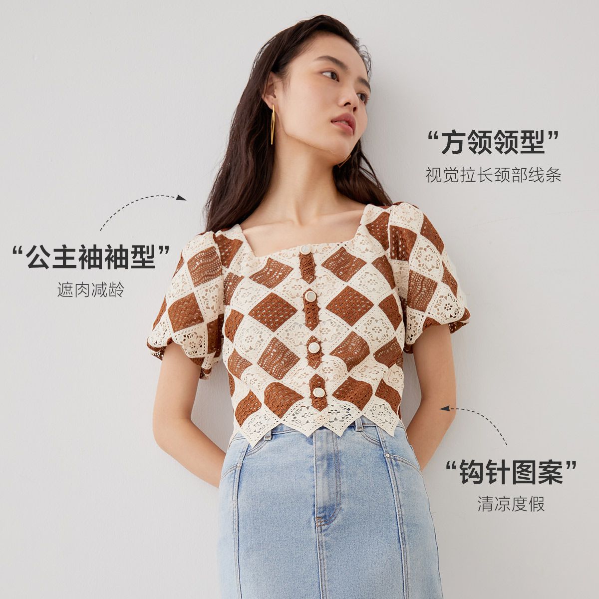 【美拉德】春夏【钩针面料设计】春夏针织泡泡袖短袖上衣百搭时尚 712465
